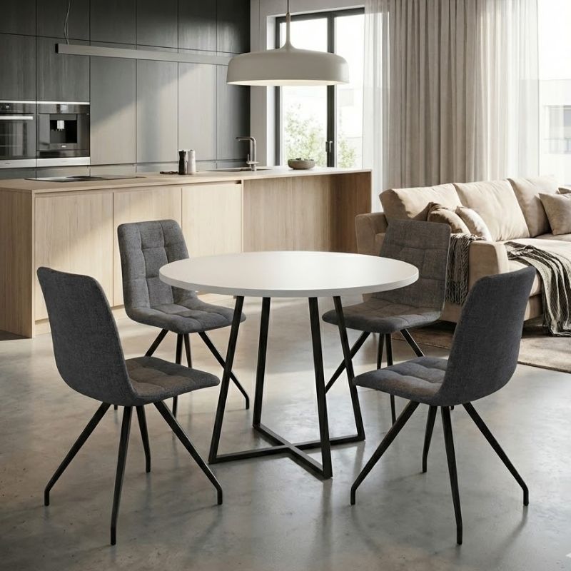 Σετ Τραπεζαρία 5τμχ Rubes - Bianca Megapap Χρώμα Λευκό - Γκρι Ø100x78εκ.