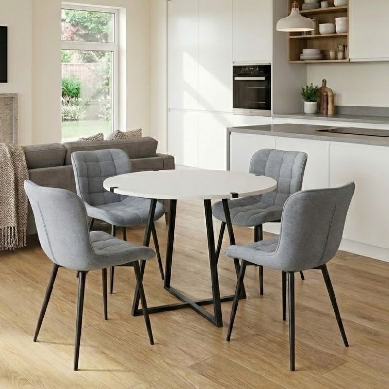 Σετ Τραπεζαρία 5τμχ Rubes - Chiara Megapap Χρώμα Λευκό - Γκρι Ø100x78εκ.