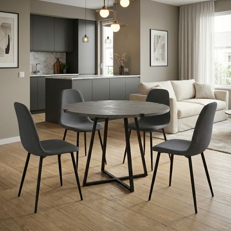 Σετ Τραπεζαρία 5τμχ Rubes - Iris Megapap Χρώμα Γκρι Σκυροδέματος - Γκρι Ø100x78εκ.