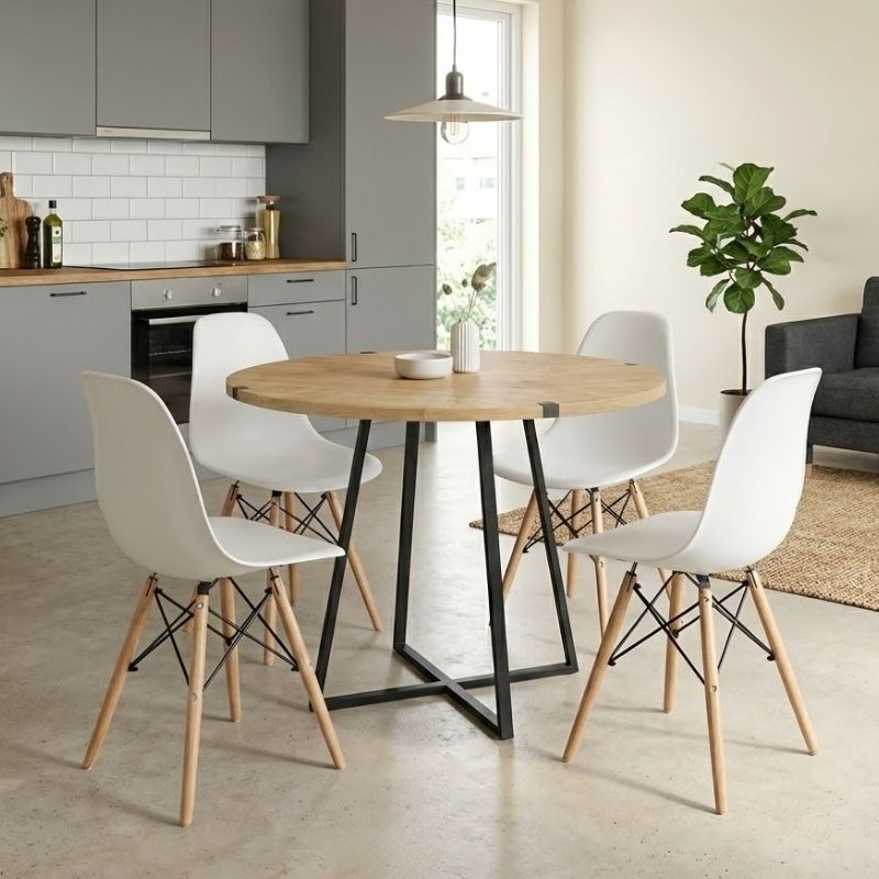 Σετ Τραπεζαρία 5τμχ Rubes - Nova Megapap Χρώμα Φυσικό Οξιάς - Λευκό Ø100x78εκ.