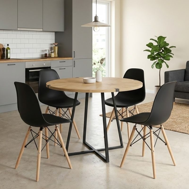 Σετ Τραπεζαρία 5τμχ Rubes - Nova Megapap Χρώμα Φυσικό Οξιάς - Μαύρο Ø100x78εκ.