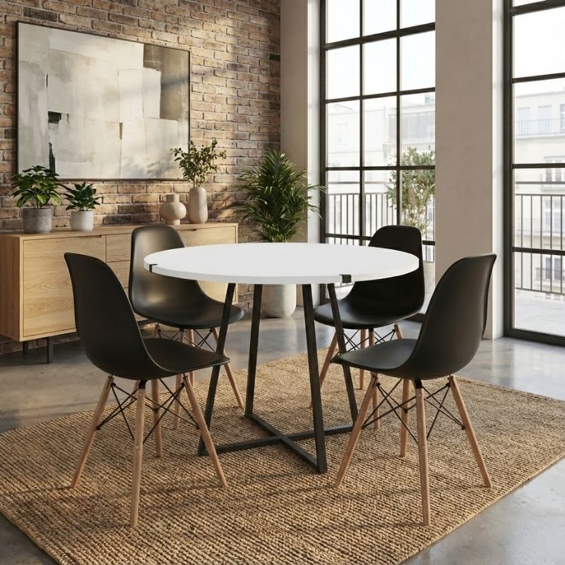 Σετ Τραπεζαρία 5τμχ Rubes - Nova Megapap Χρώμα Λευκό - Μαύρο Ø100x78εκ.