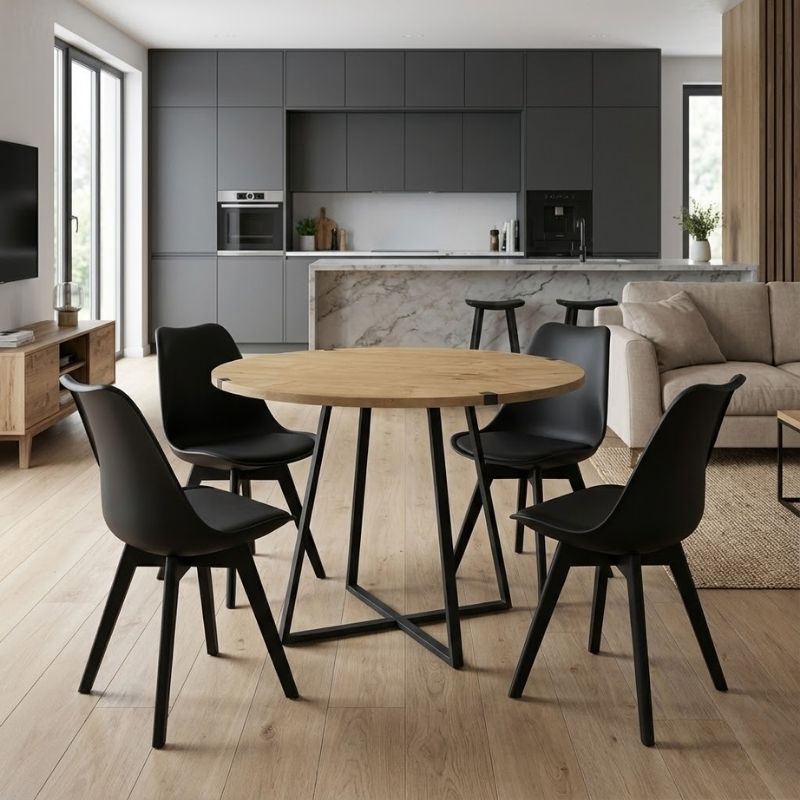 Σετ Τραπεζαρία 5τμχ Rubes - Viva Megapap Χρώμα Φυσικό Οξιάς - Μαύρο Ø100x78εκ.