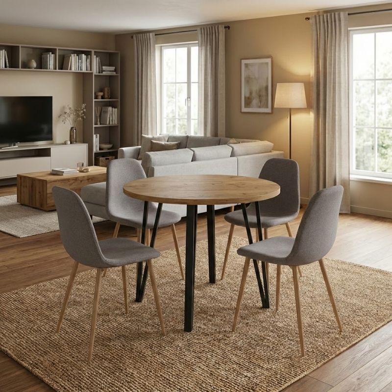 Σετ Τραπεζαρία 5τμχ Xana - Iris Megapap Χρώμα Sepet oak - Ανοιχτό Μπεζ/φυσικό Πόδι Ø90x77,5εκ.