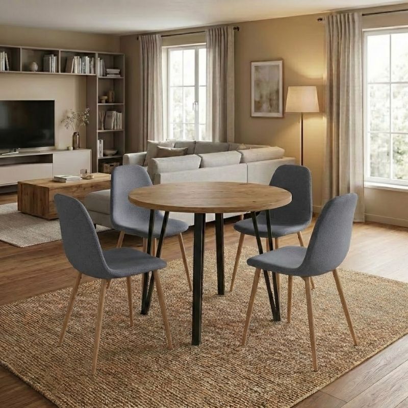 Σετ Τραπεζαρία 5τμχ Xana - Iris Megapap Χρώμα Sepet oak - Γκρι/φυσικό Πόδι Ø90x77,5εκ.