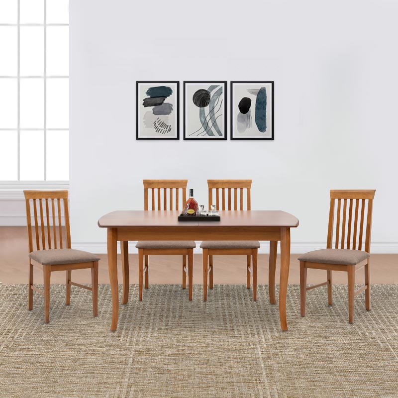 Για εσάς που ψάχνετε μια τραπεζαρία σε κλασσική γραμμή, η τραπεζαρία Belfast σε χρώμα καρυδί είναι η ιδανική επιλογή και θα ταιριάξει σε κάθε σπίτι. Ο σκελετός του τραπεζιού και των καρεκλών είναι κατασκευασμένος από μασίφ ξύλο οξιάς που τον καθιστά στιβαρό και υψηλών αντοχών στο χρόνο. Η επιφάνεια του τραπεζιού είναι κατασκευασμένη από MDF εξαιρετικής ποιότητας. Η τραπεζαρία αποτελείται από ένα επεκτεινόμενο τραπέζι και τέσσερις καρέκλες.