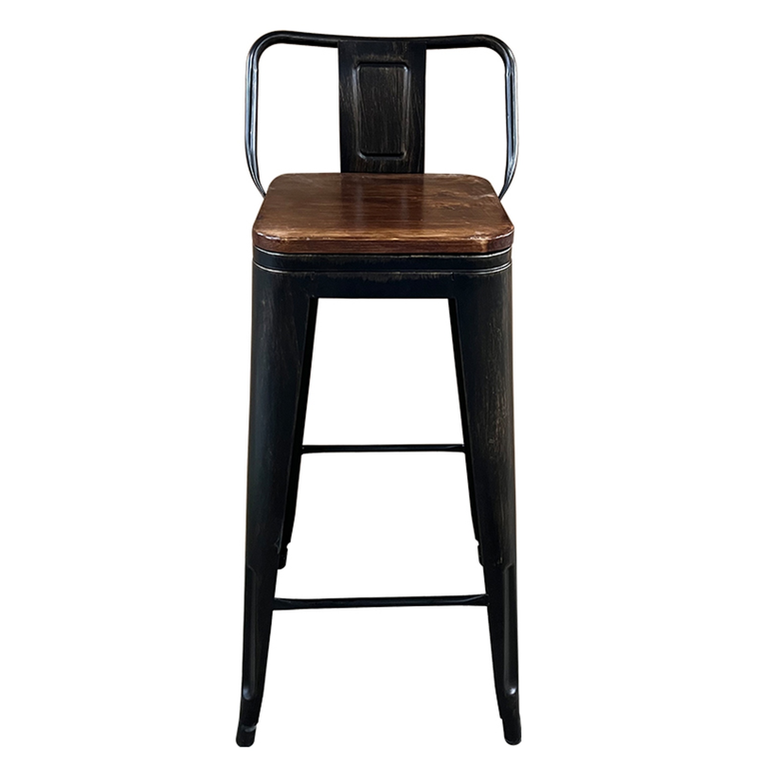 Σκαμπό Bar ArteLibre Βιομηχανικού Τύπου Vintage MOLERO II Μαύρο Αντικέ/Καφέ Μέταλλο/Ξύλο 44x44x94cm