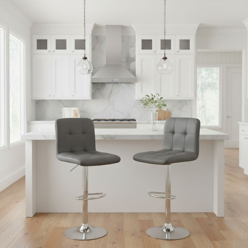 Σκαμπό Μπαρ Carmelo Megapap με Ρυθμιζόμενο Ύψος pu Γκρι - Βάση Χρωμίου 45x42x90/113εκ.