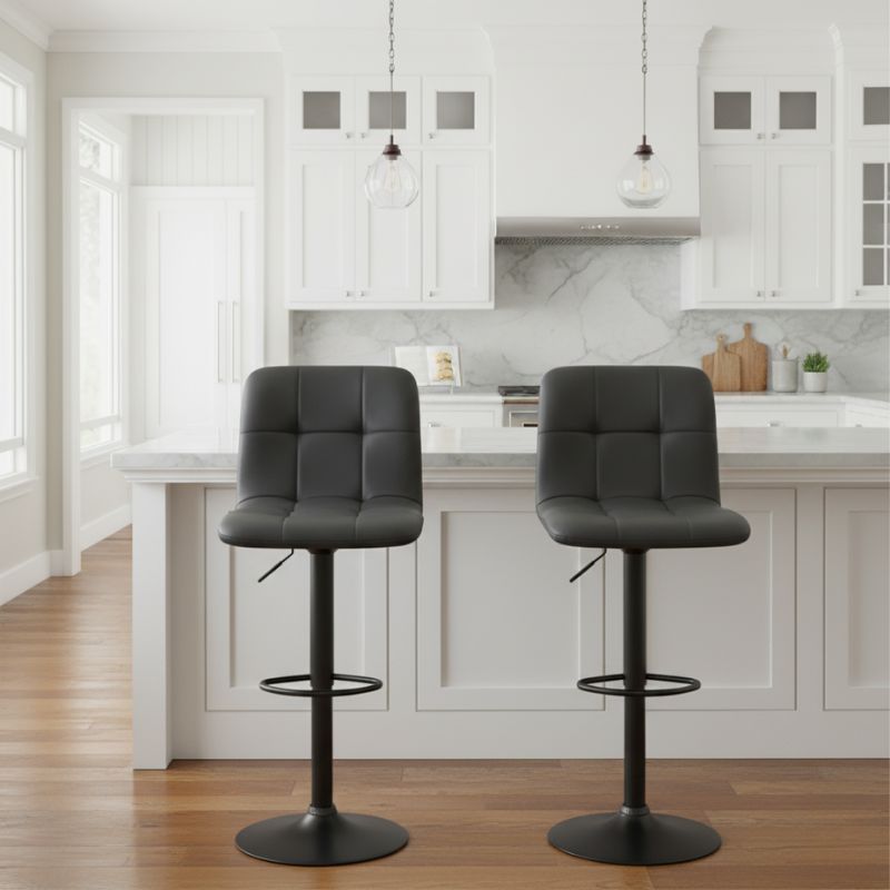 Σκαμπό Μπαρ Carmelo Megapap με Ρυθμιζόμενο Ύψος pu Μαύρο - Βάση Μαύρο ματ 45x42x90/113εκ.