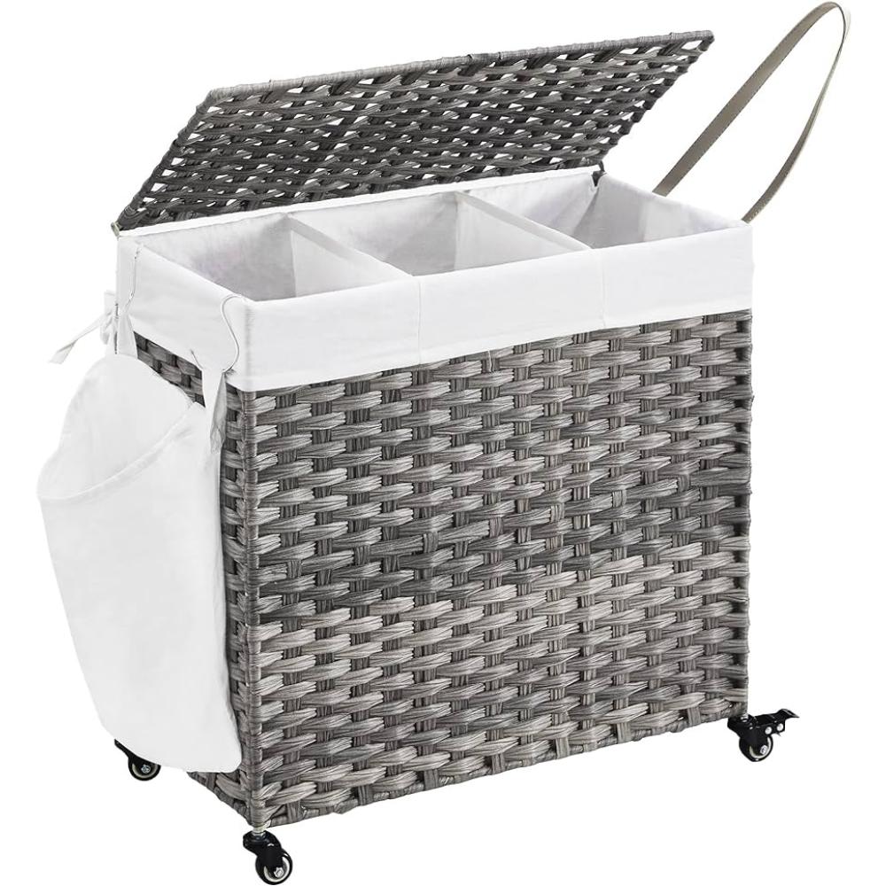 Songmics Καλάθι Απλύτων Ψάθινο Πτυσσόμενο με Καπάκι 66x35x60cm Γκρι (Lcb363g01) (Snglcb363g01)