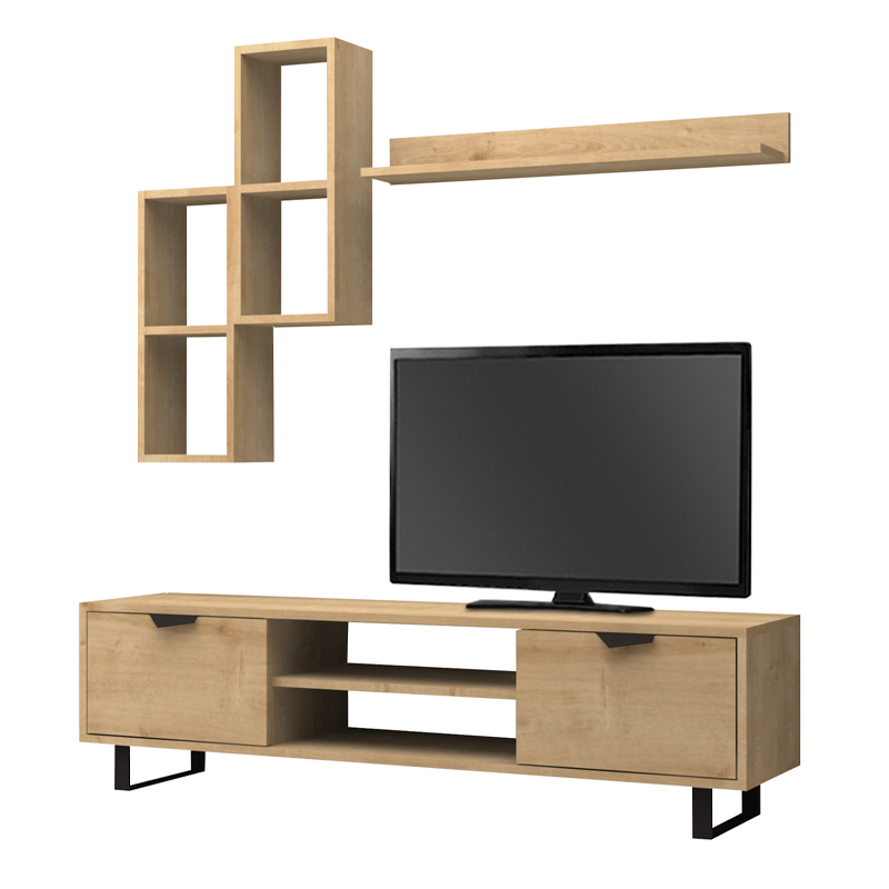 - Η σύνθεση αποτελείται από ένα έπιπλο τηλεόρασης και δύο ραφιέρες τοίχου.