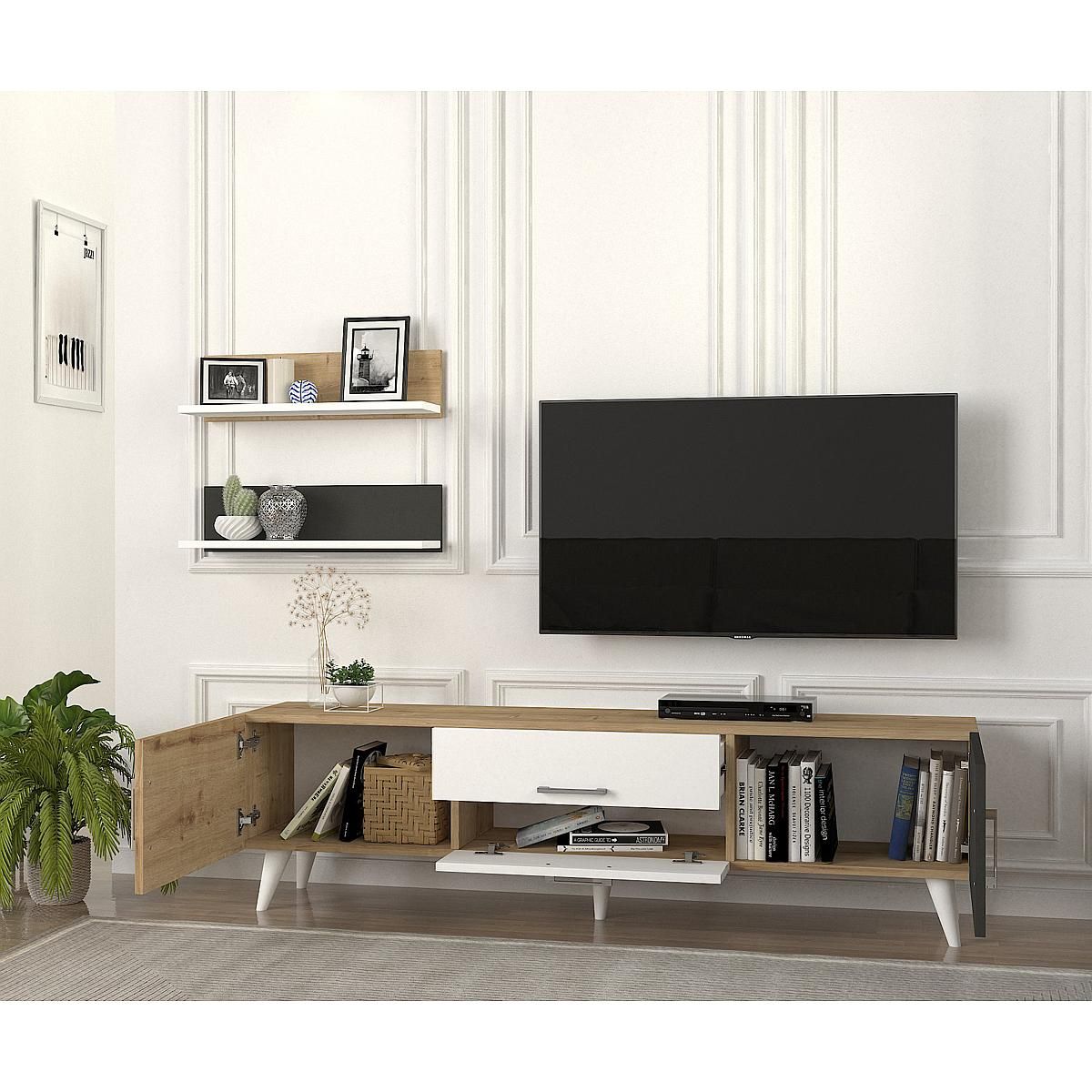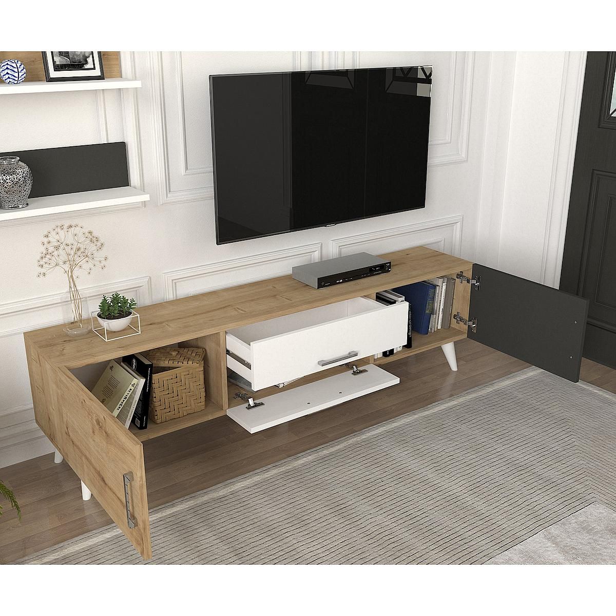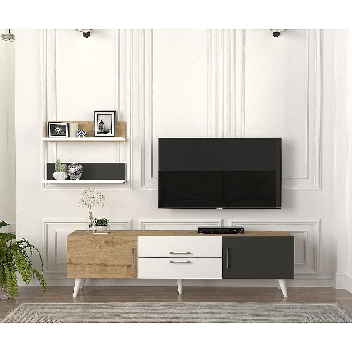 Σύνθετο ArteLibre OREGON Sapphire/Ανθρακί/Μπεζ Μοριοσανίδα 160x32x45cm