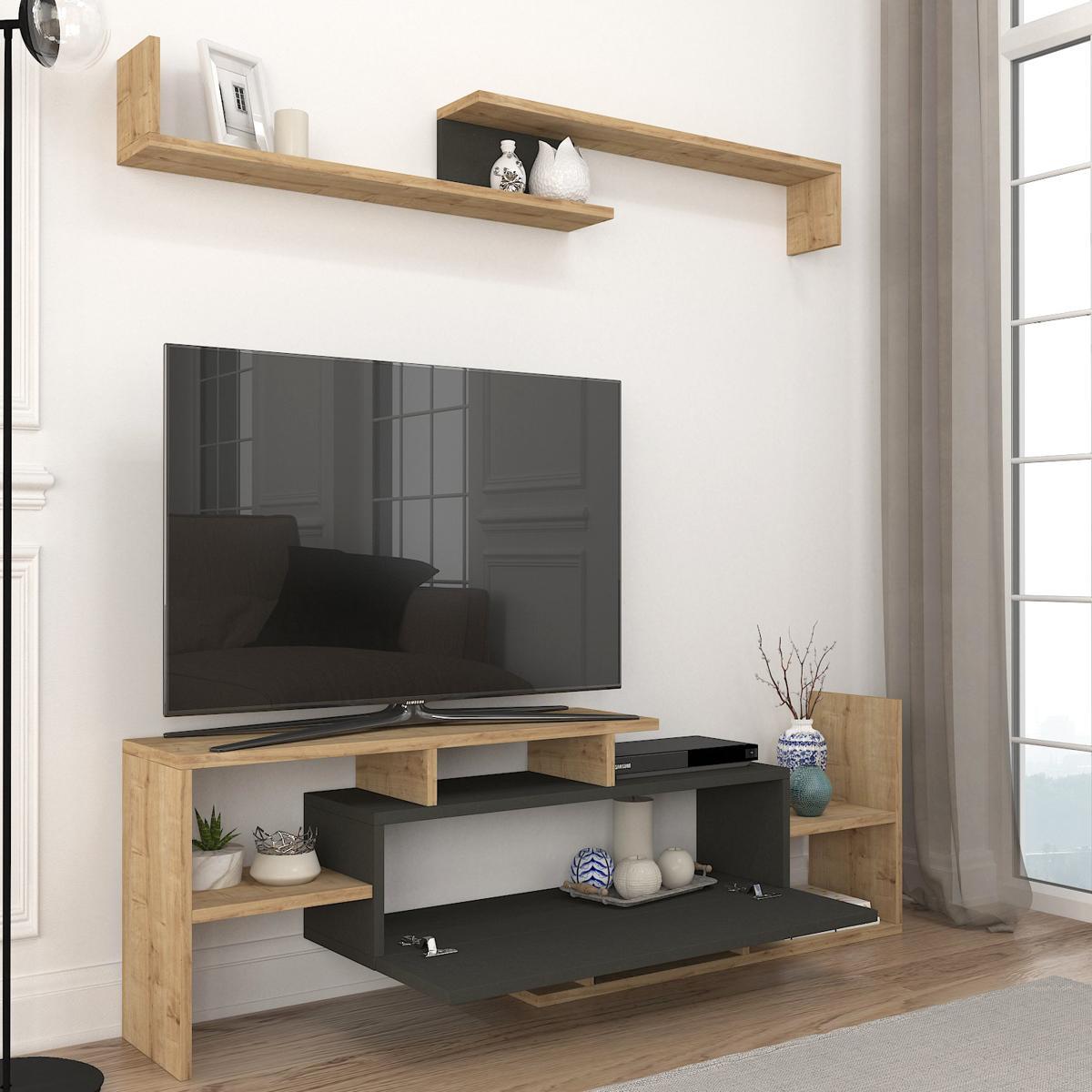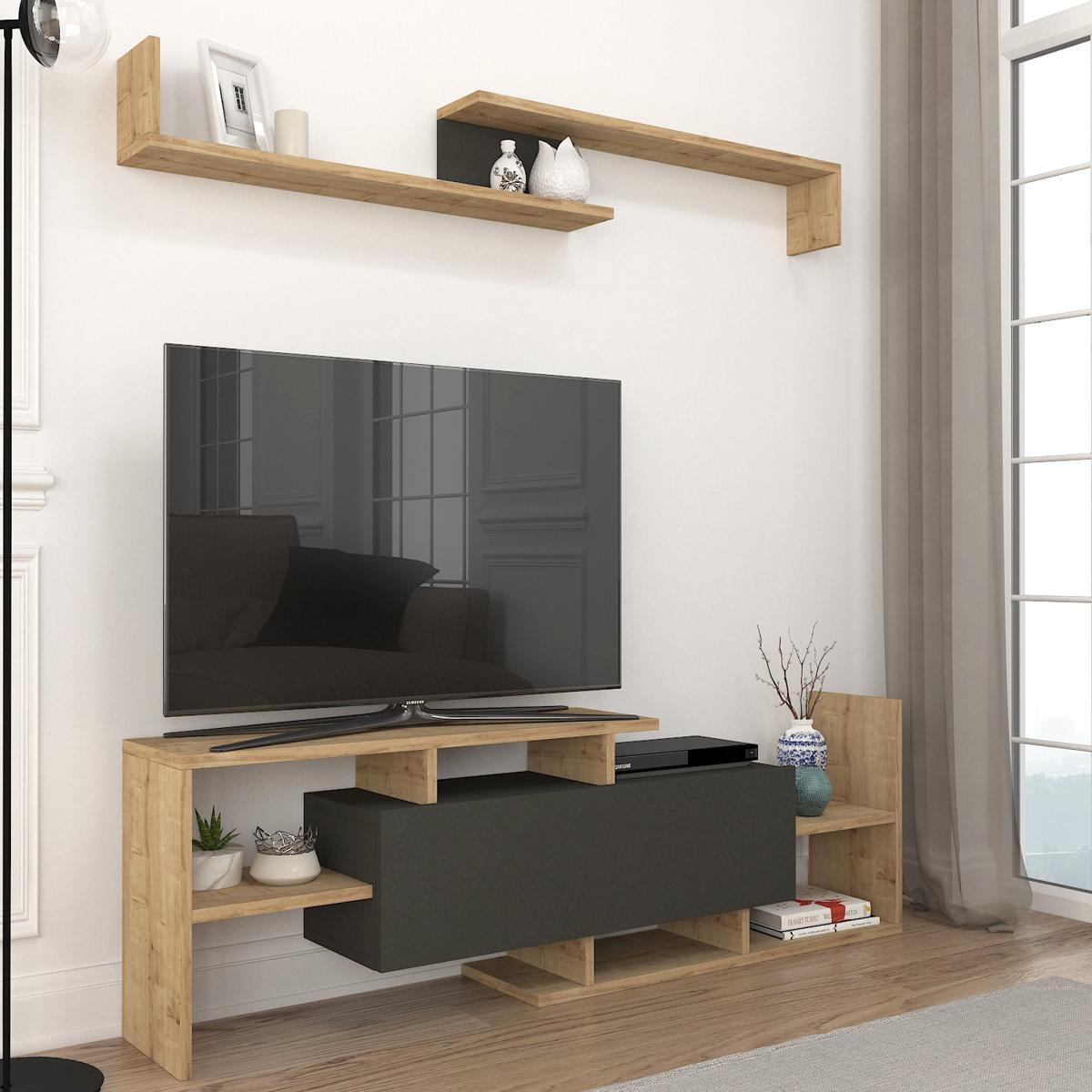 Σύνθετο Τηλεόρασης ArteLibre DREAM Φυσικό/Ανθρακί Μοριοσανίδα/Μελαμίνη 154x25x170cm