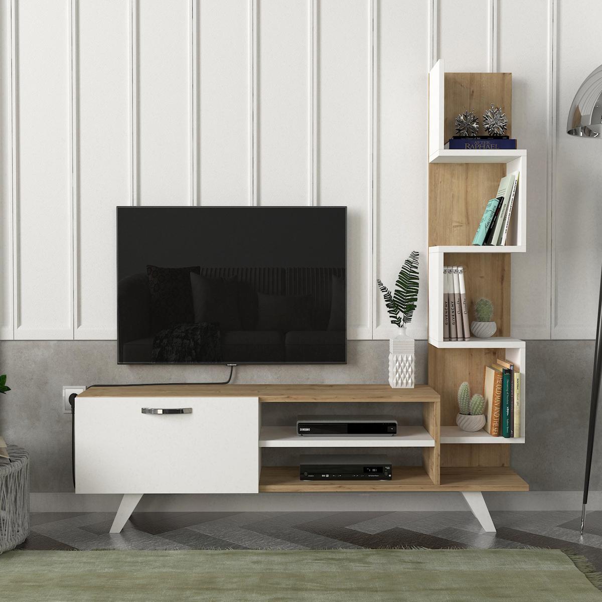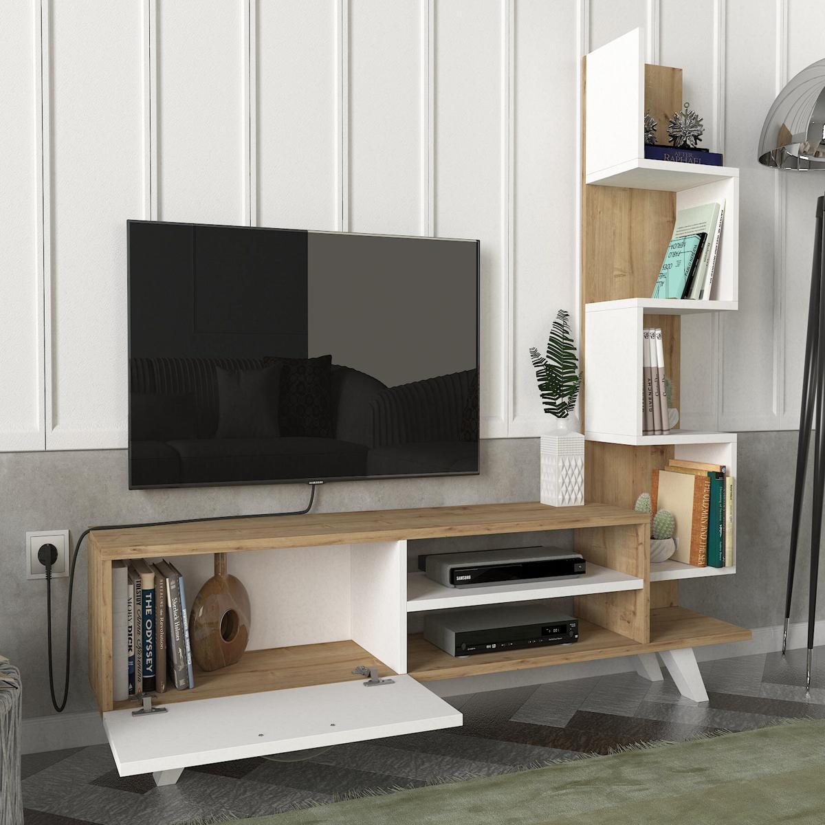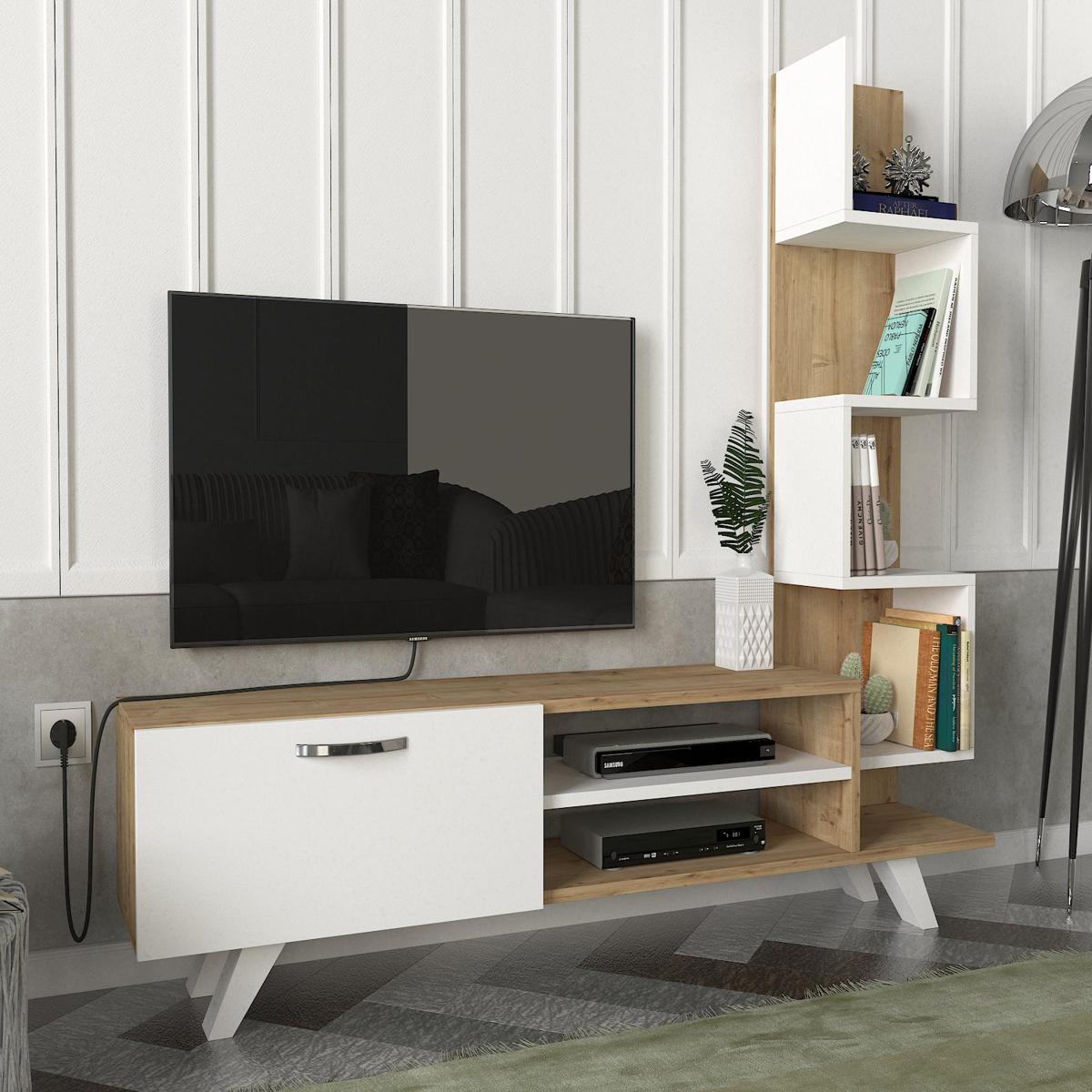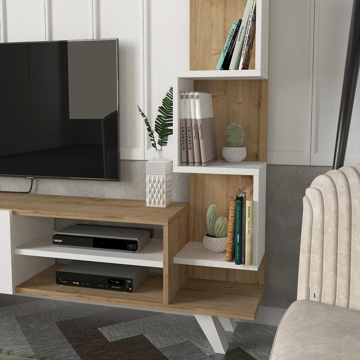 Σύνθετο Τηλεόρασης ArteLibre KEROS Λευκό/Φυσικό Μοριοσανίδα/Μελαμίνη 150x30x132cm