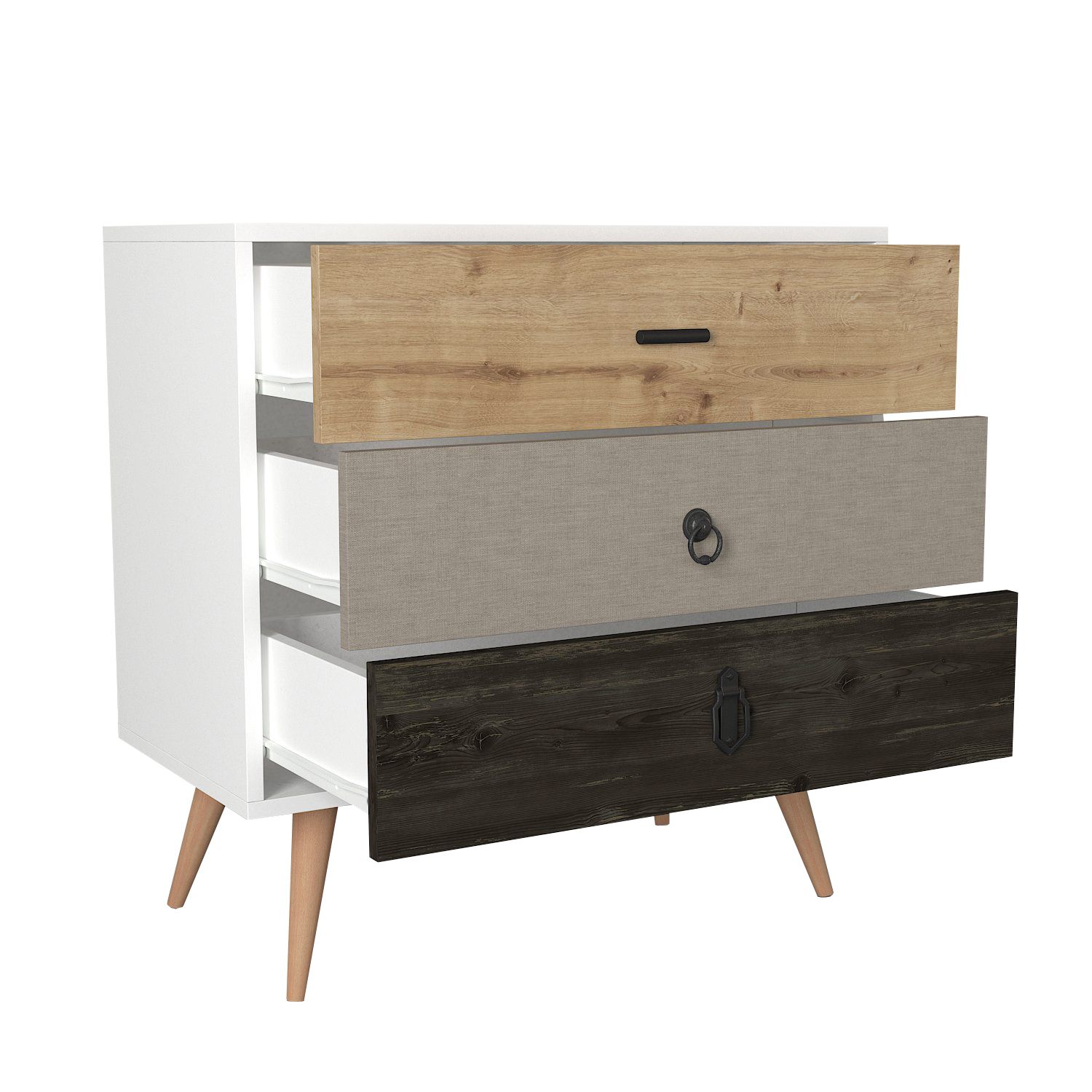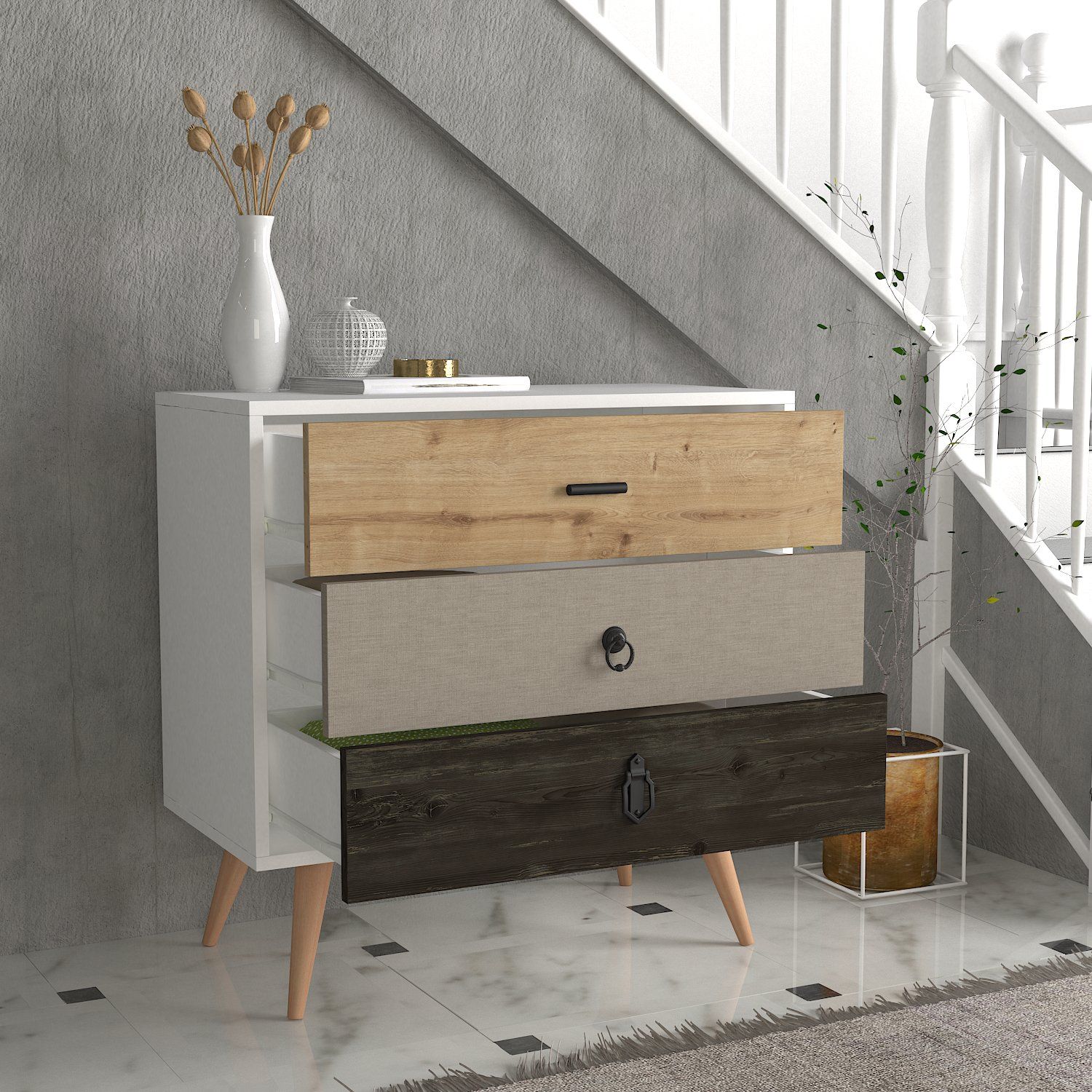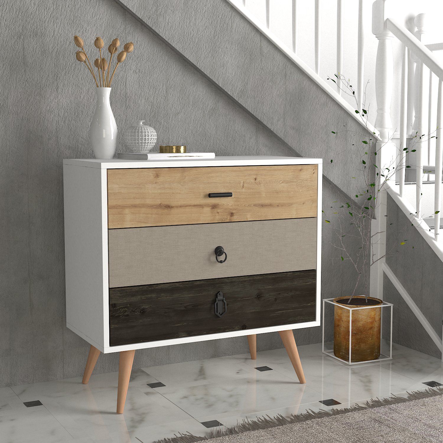 Συρταριέρα ArteLibre KIMOLOS Λευκό/Φυσικό/Καφέ 80x40x79cm