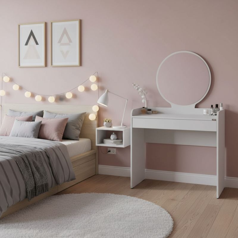 Τουαλέτα με Καθρέπτη Curve Megapap Χρώμα Λευκό 90x47x142εκ.