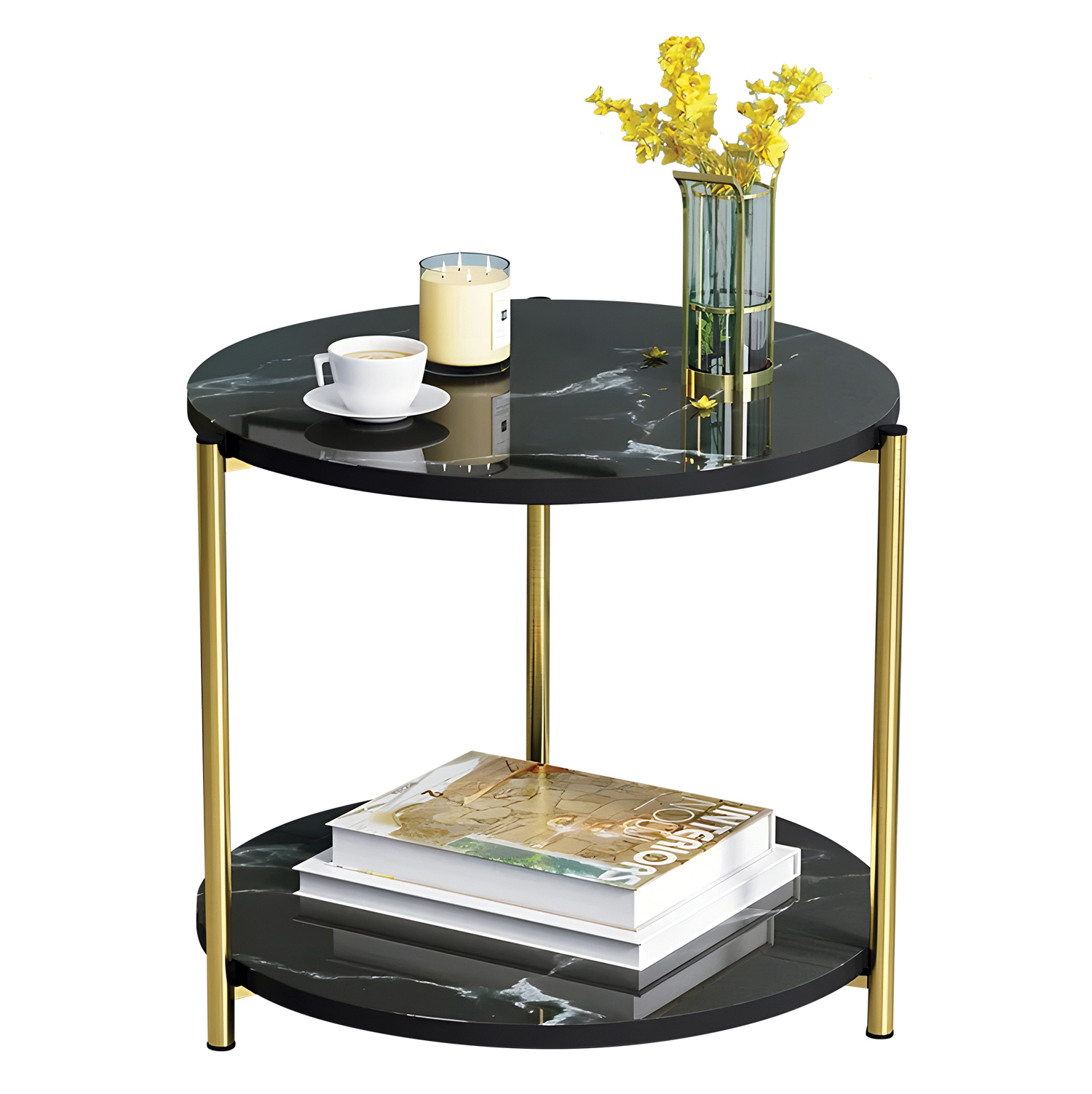 Τραπεζάκι Σαλονιού ArteLibre ALGETI Μαύρο Με Όψη Μαρμάρου MDF/Μέταλλο Φ40x43cm