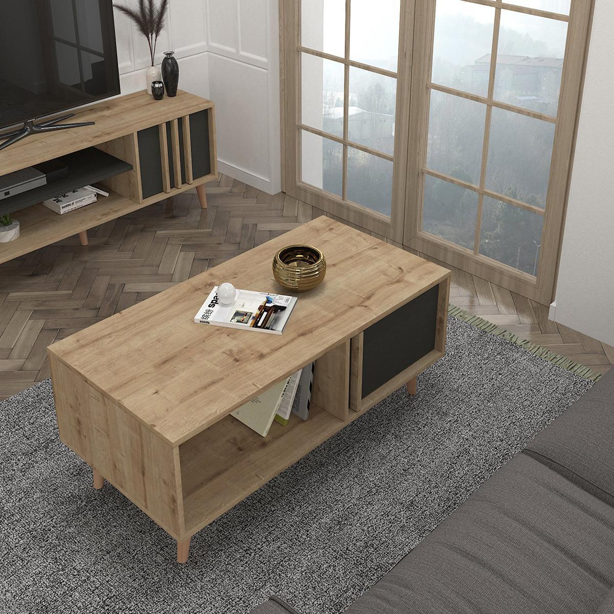 Τραπεζάκι Σαλονιού ArteLibre ANDROS Φυσικό/Ανθρακί Μοριοσανίδα/Μελαμίνη 120x60x45cm