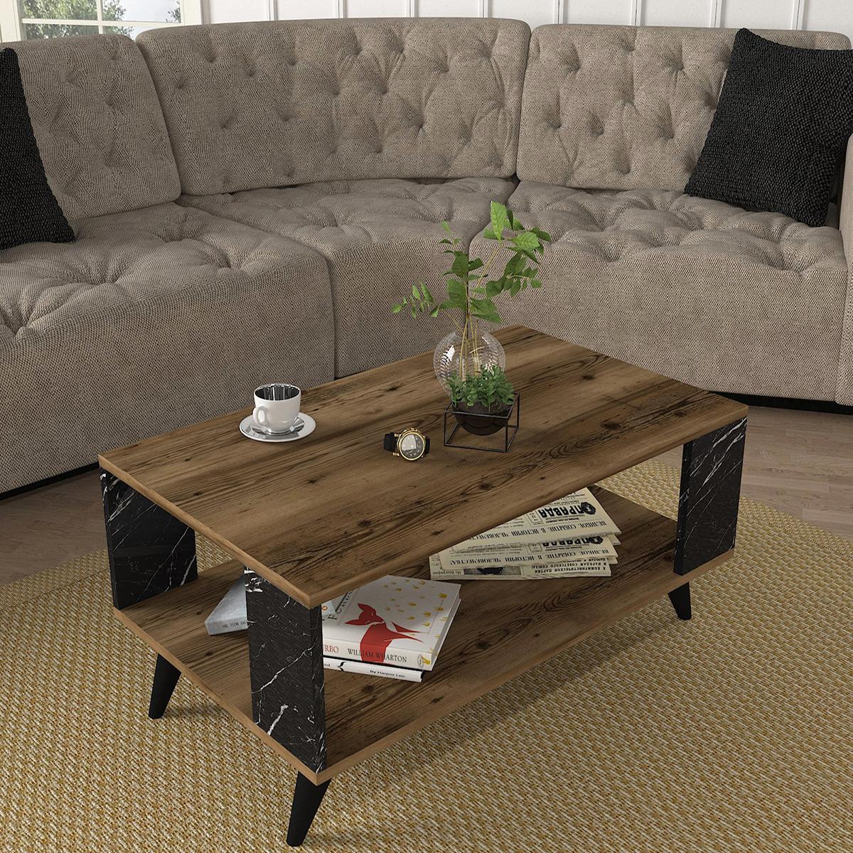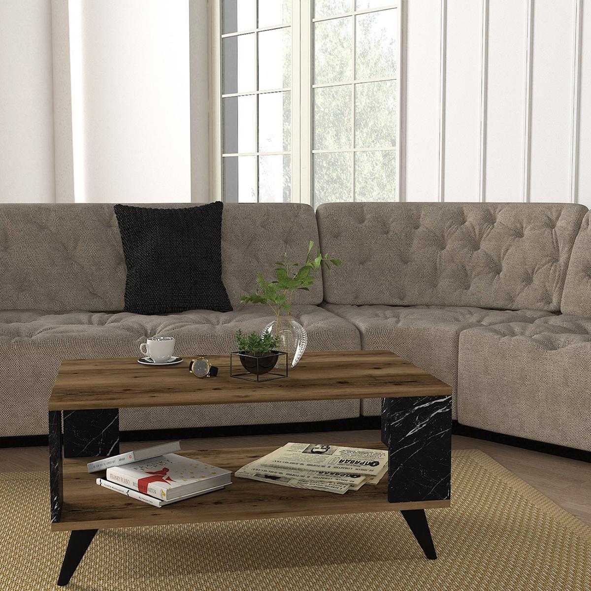 Τραπεζάκι Σαλονιού ArteLibre BICKEL Καρυδί/Μαύρο Μοριοσανίδα/Μελαμίνη 90x54x42cm
