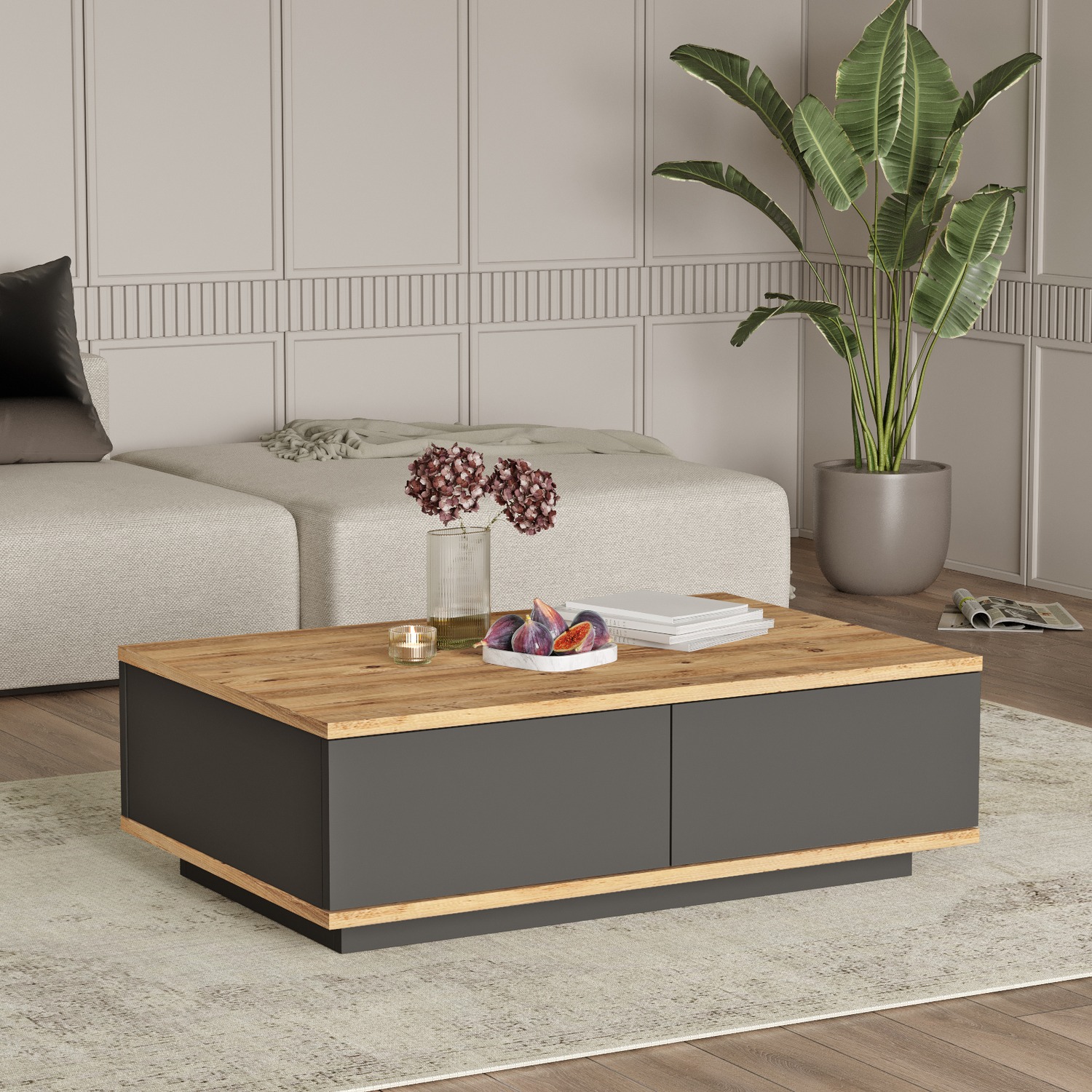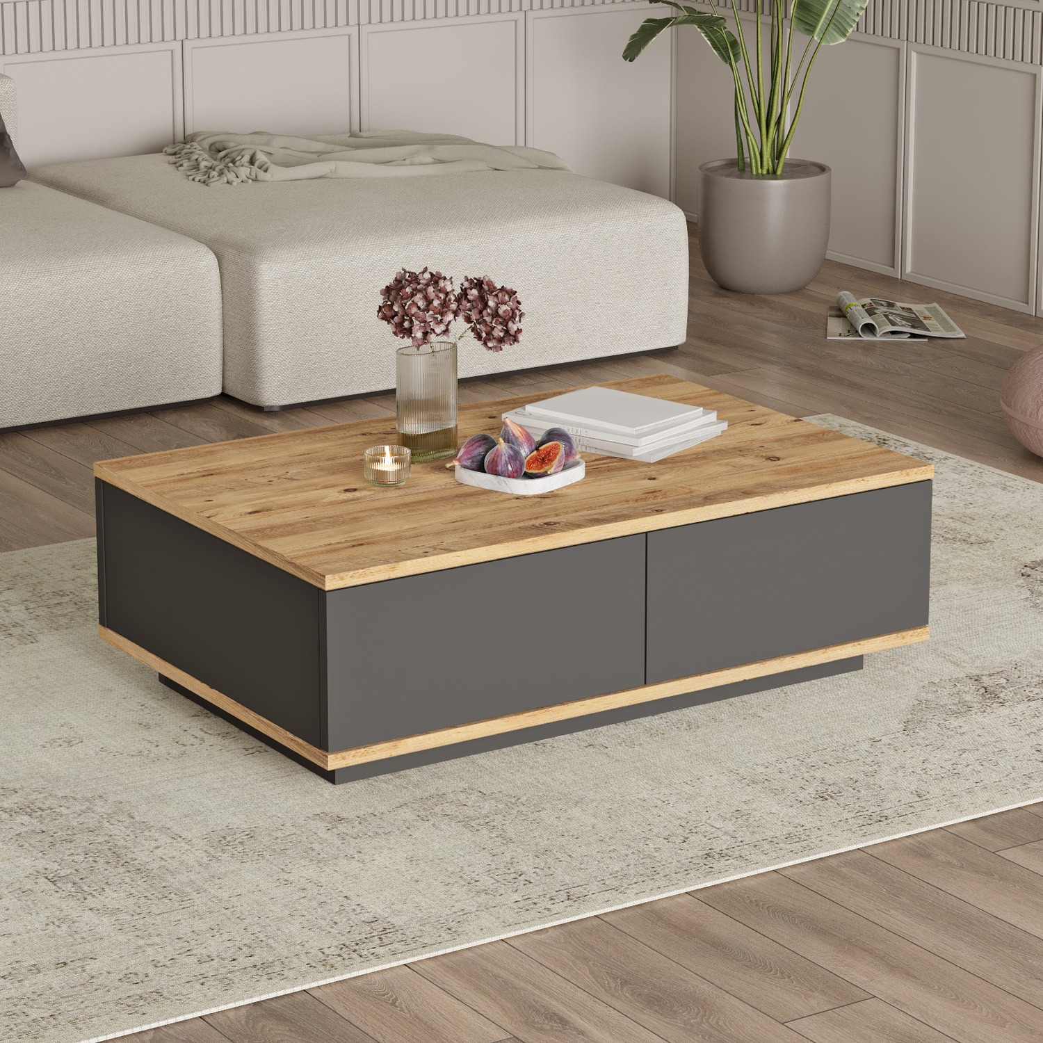 Τραπεζάκι Σαλονιού ArteLibre CLACK Πεύκο/Ανθρακί Μοριοσανίδα/Μελαμίνη 90x60x28.6cm