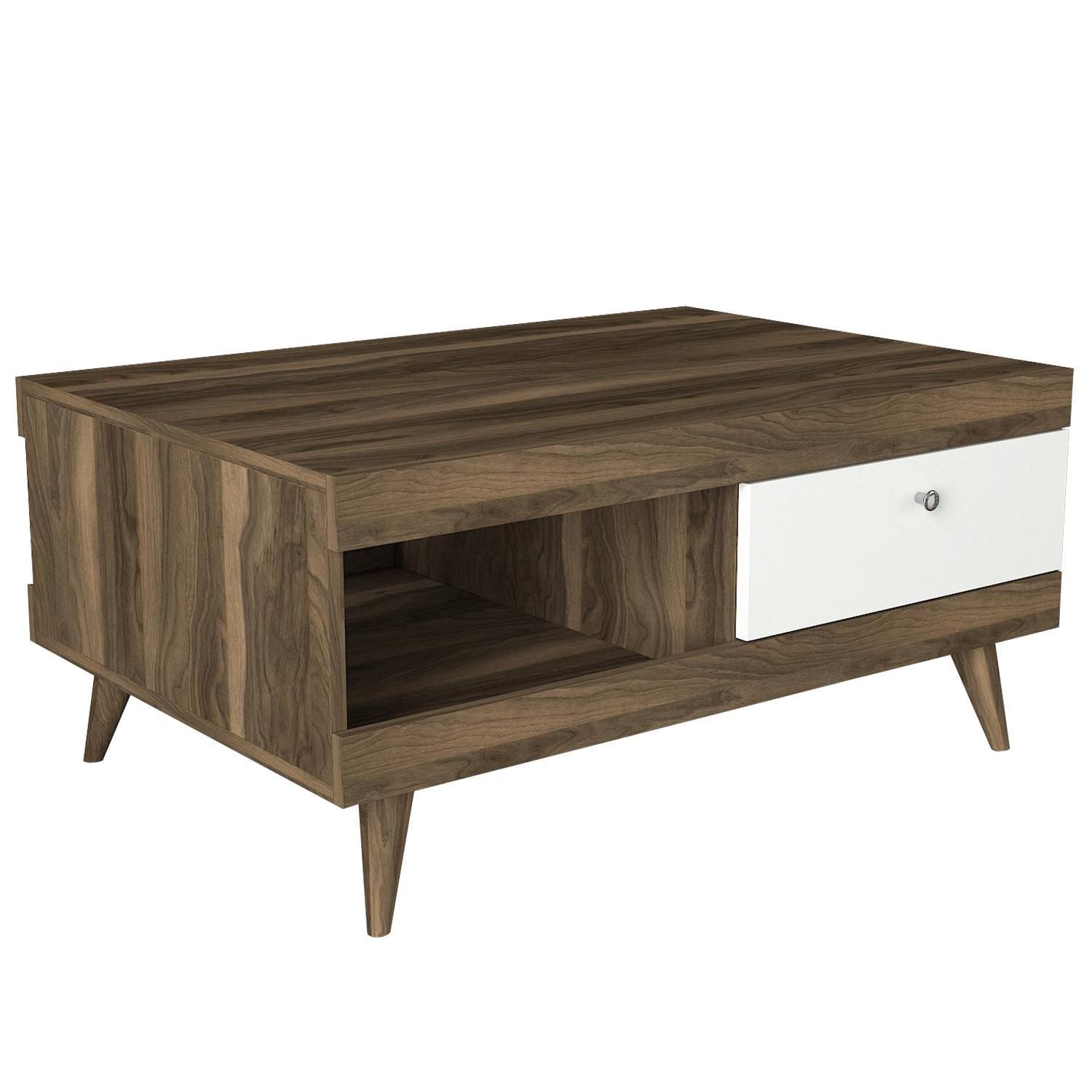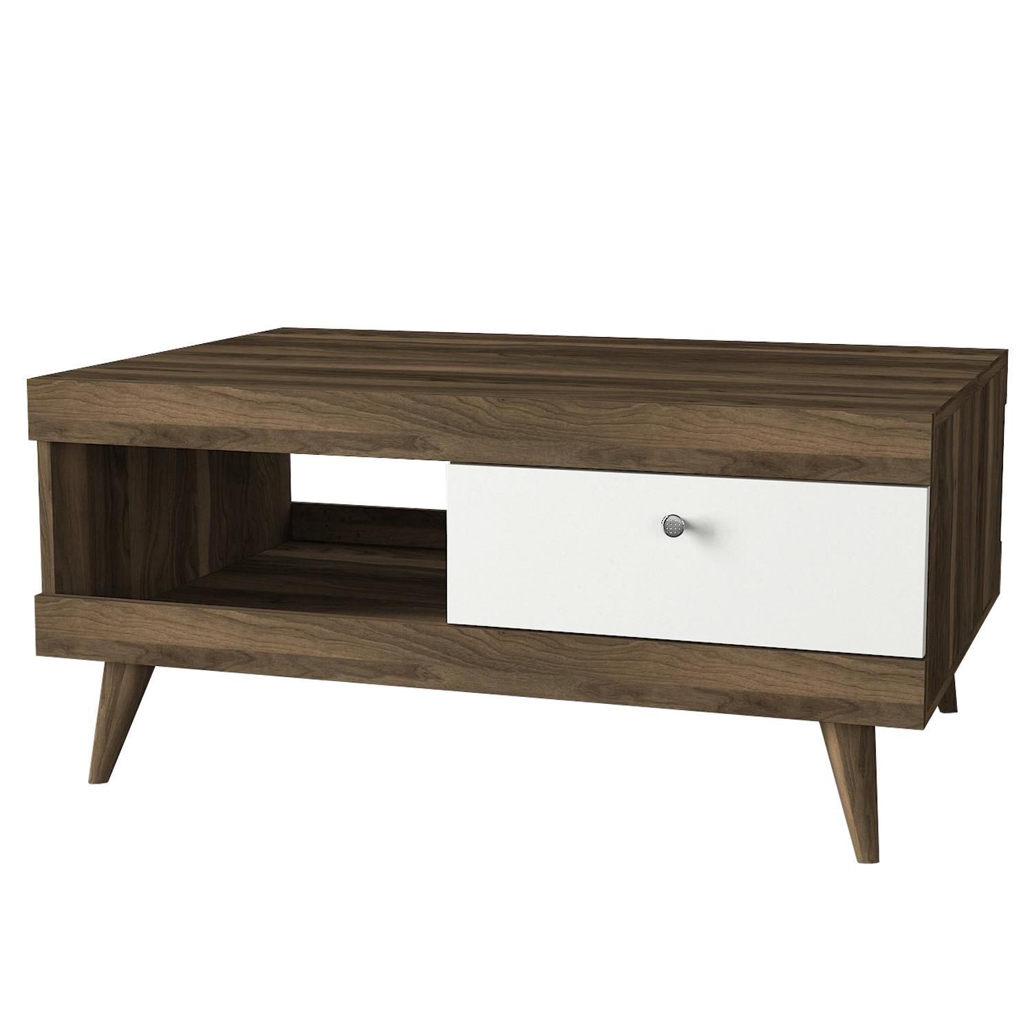Τραπεζάκι Σαλονιού ArteLibre Hios Λευκό-Σκούρο Καφέ 100x65x47cm