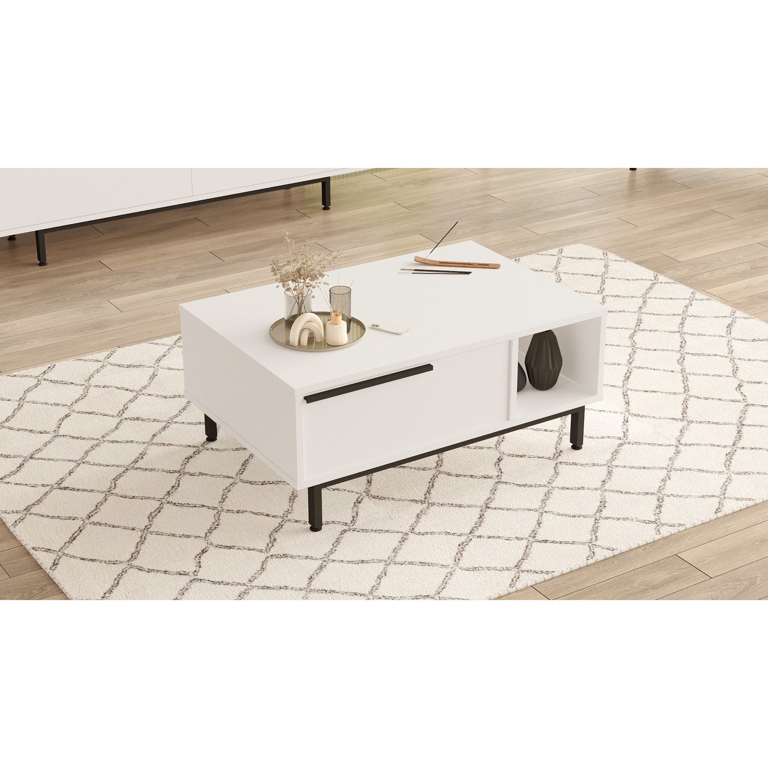 Τραπεζάκι Σαλονιού ArteLibre HUTTON Λευκό Μοριοσανίδα/Μέταλλο 90x60x37.6cm
