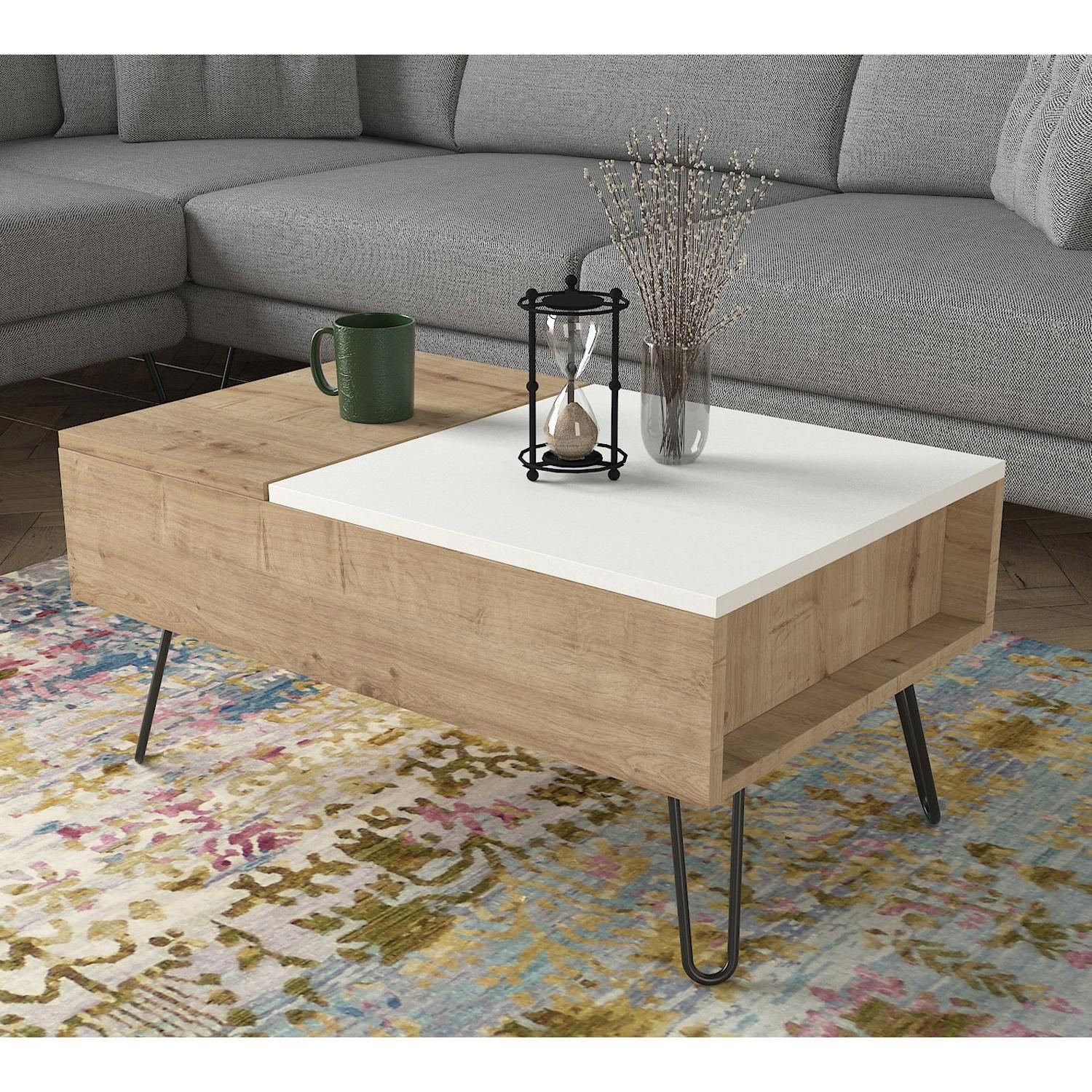 Τραπεζάκι Σαλονιού ArteLibre LIMNOS Φυσικό/Λευκό Μοριοσανίδα/Μελαμίνη 80x50x39cm