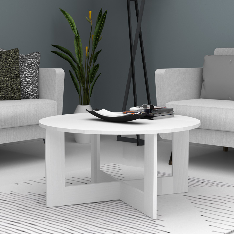 Τραπεζάκι Σαλονιού Kati Megapap Χρώμα Λευκό Ø80x42εκ.