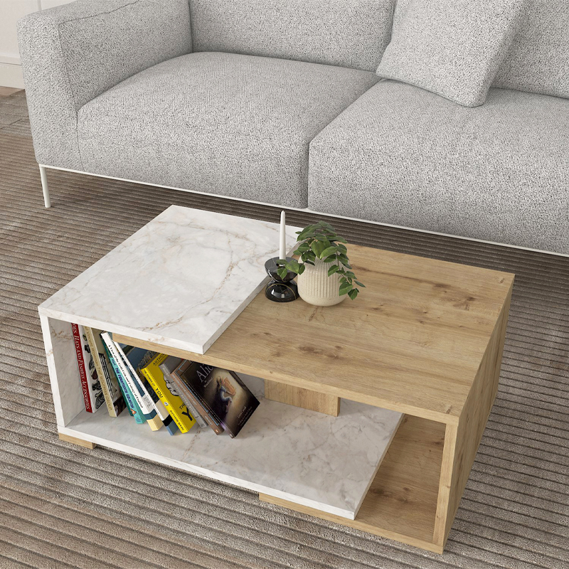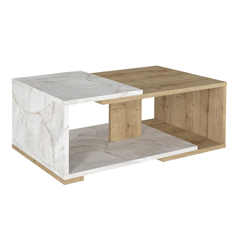 Τραπεζάκι Σαλονιού Mareta Megapap Χρώμα Λευκό εφέ Μαρμάρου - Sapphire oak 81,8x50x35εκ.