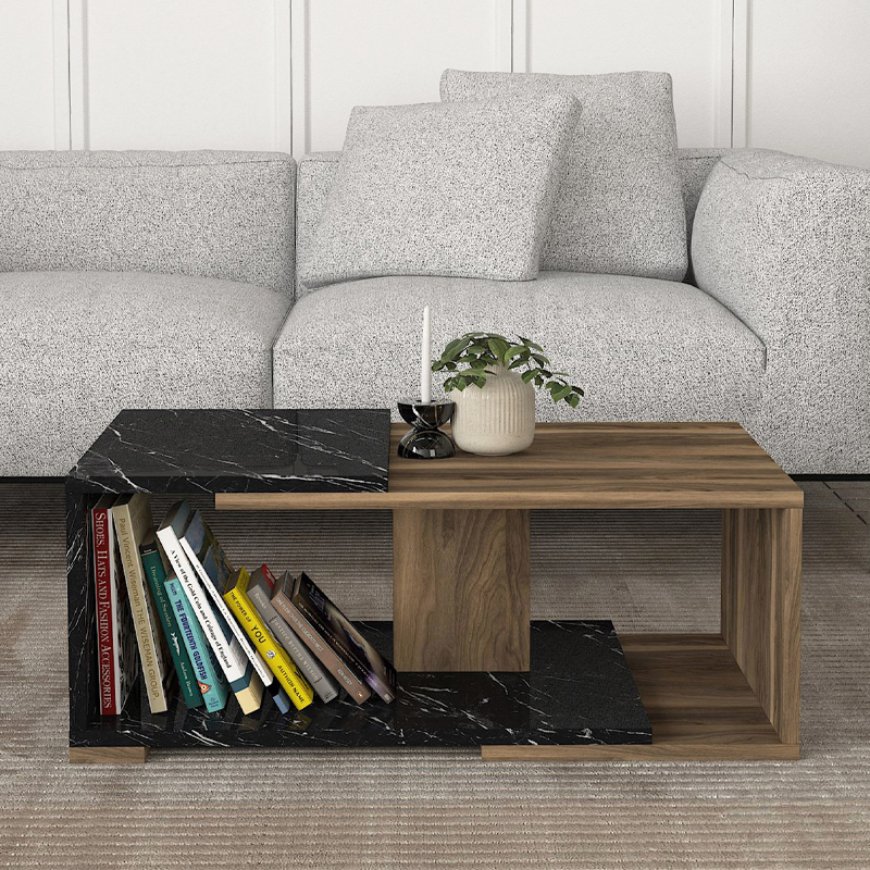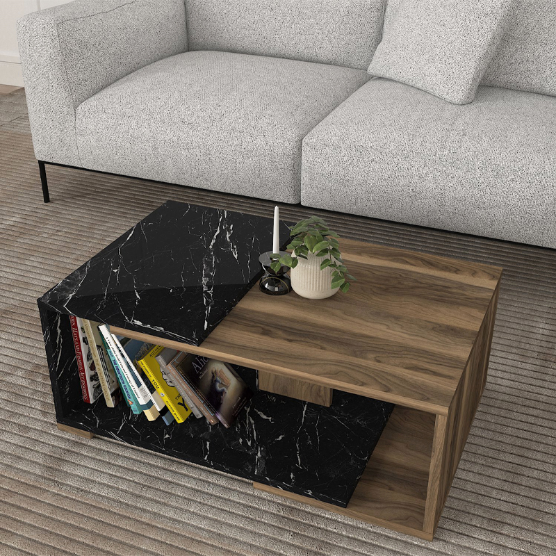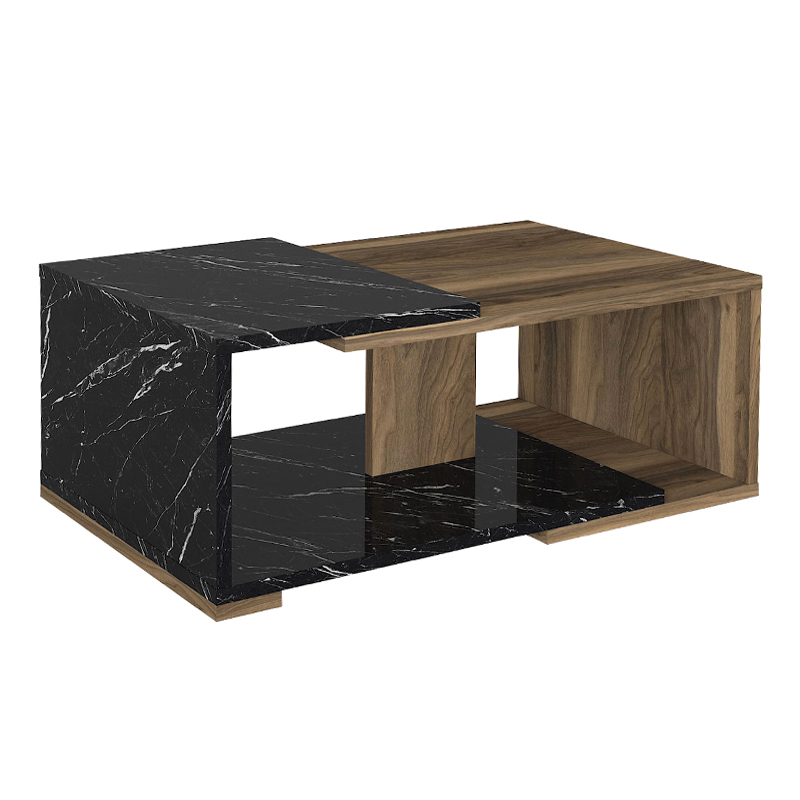 Τραπεζάκι Σαλονιού Mareta Megapap Χρώμα Μαύρο εφέ Μαρμάρου - Καρυδί 81,8x50x35εκ.