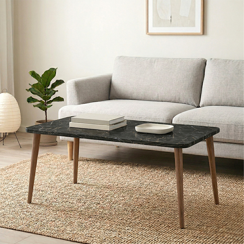 Τραπεζάκι Σαλονιού Plane Megapap Χρώμα Μαύρο εφέ Μαρμάρου 90x55x41εκ.