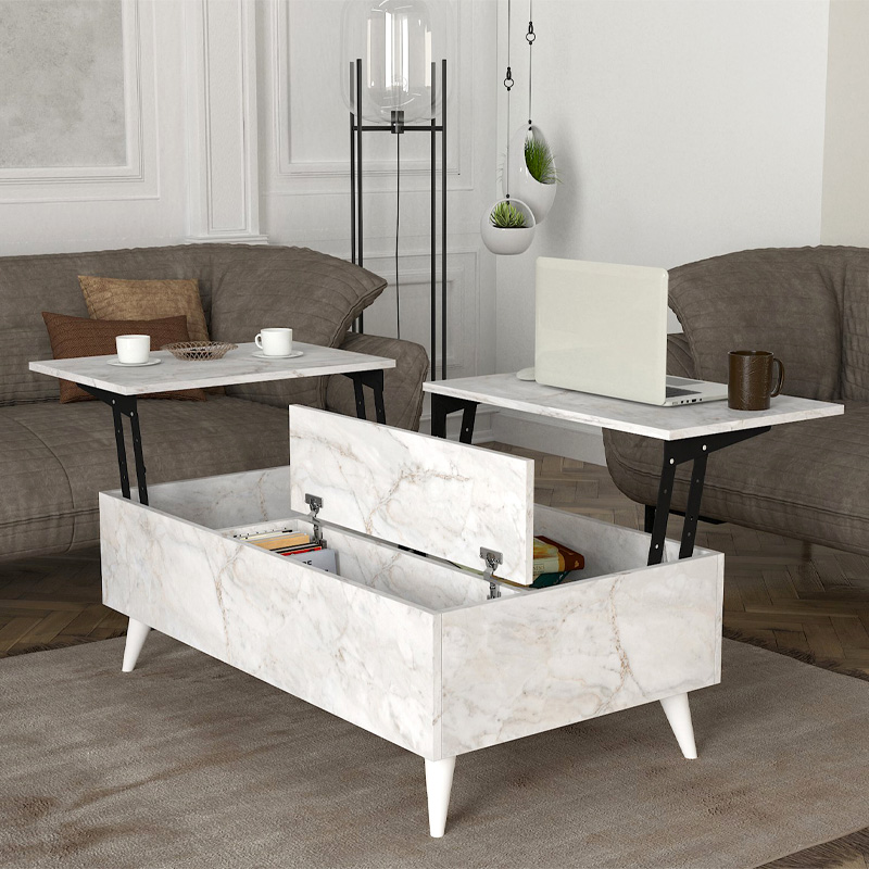 Το τραπεζάκι σαλονιού Roy διαθέτει μηχανισμό που επιτρέπει να σηκωθεί η επιφάνεια του σε θέση σερβιρίσματος για το φαγητό ή το laptop, δημιουργώντας χώρο για την αποθήκευση αντικειμένων στο εσωτερικό του.