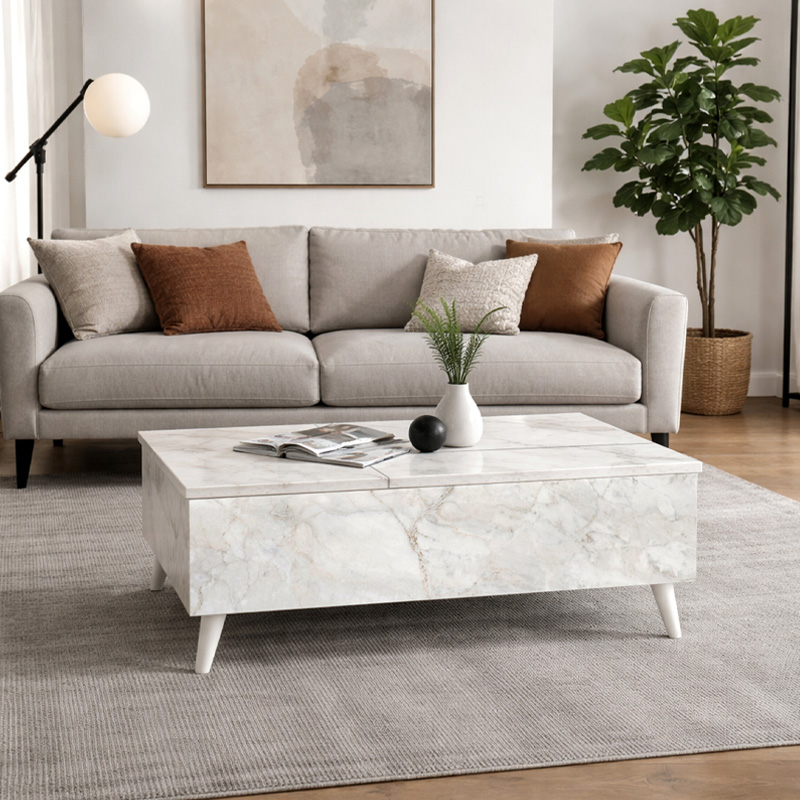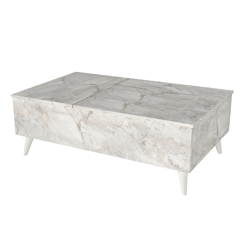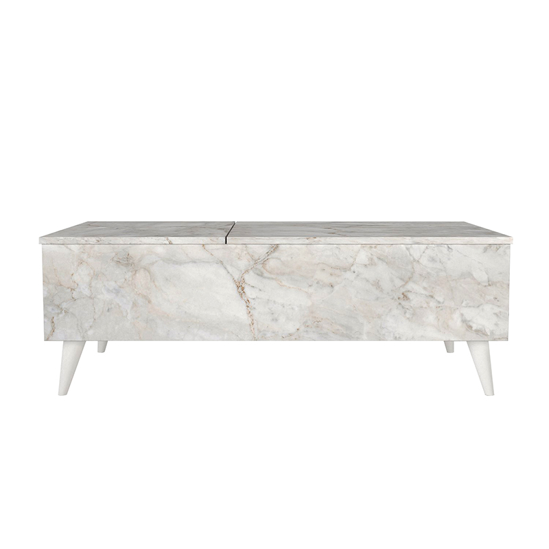 Τραπεζάκι Σαλονιού roy Megapap με Σερβιτόρο Χρώμα Λευκό εφέ Μαρμάρου 121x69x40εκ.