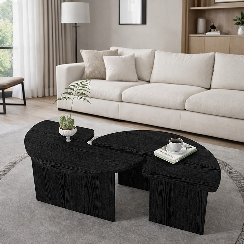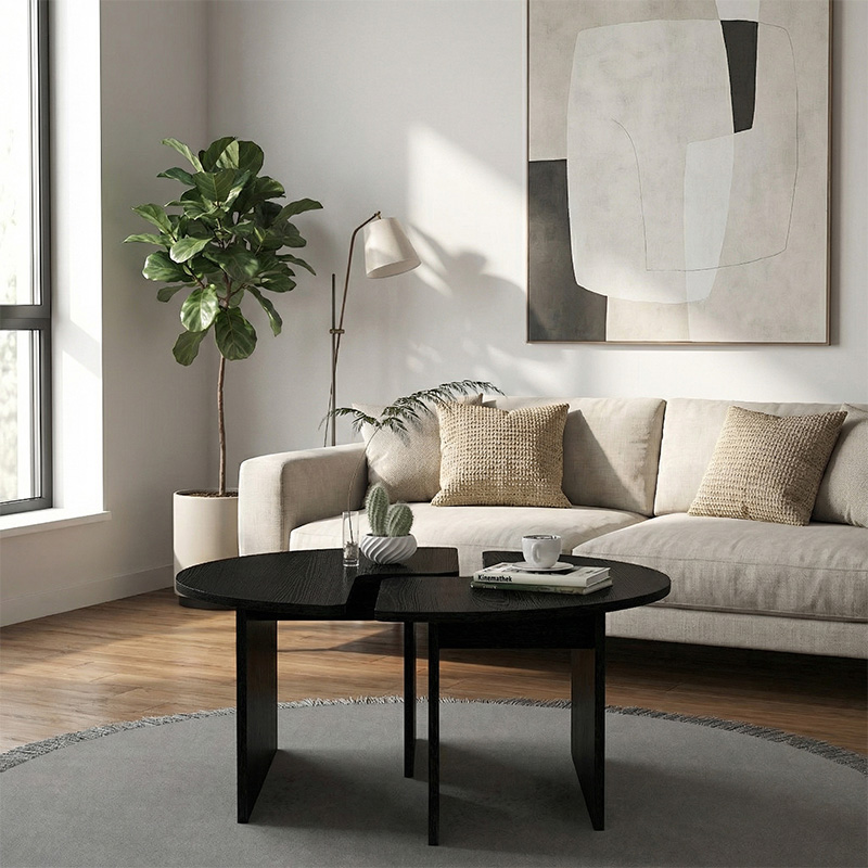 Τραπεζάκι Σαλονιού σετ 2 τμχ Dorena Megapap Χρώμα Sencron Black Ø90x41,7εκ.