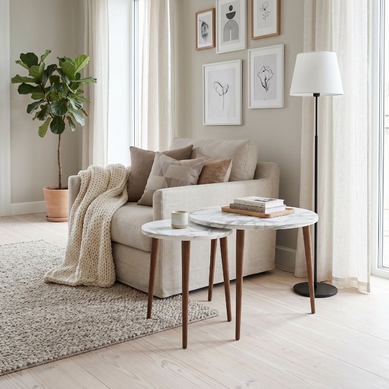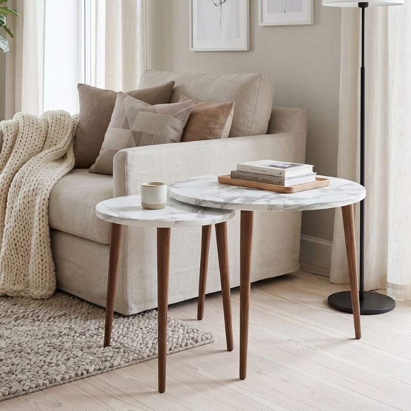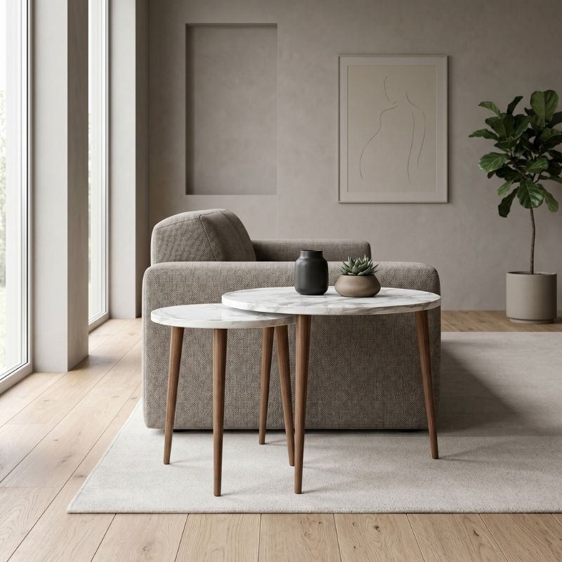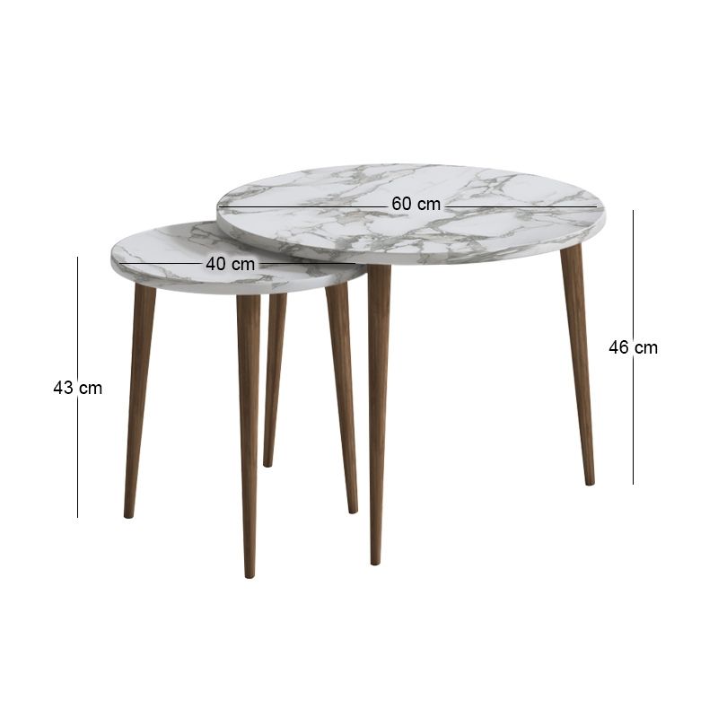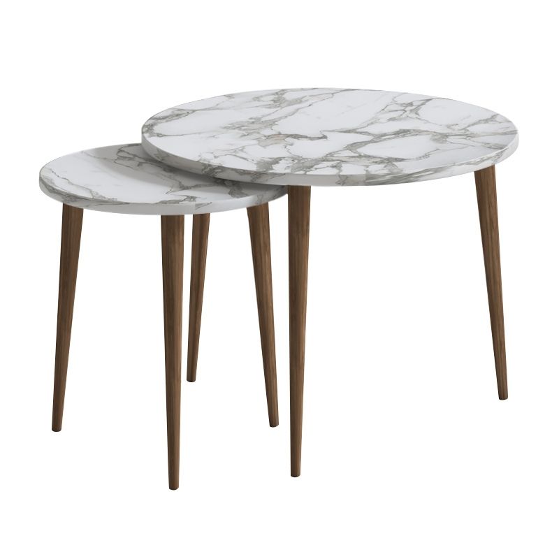 Τραπεζάκι Σαλονιού σετ 2 τμχ Nola Megapap Χρώμα Λευκό εφέ Μαρμάρου Ø60x46εκ.