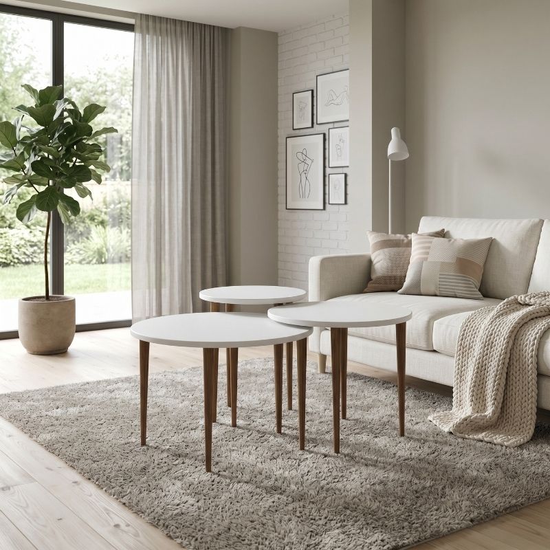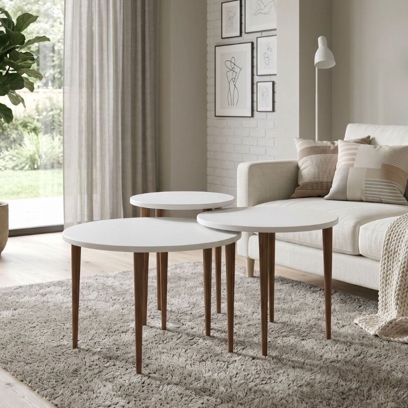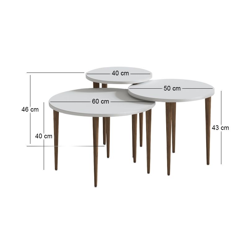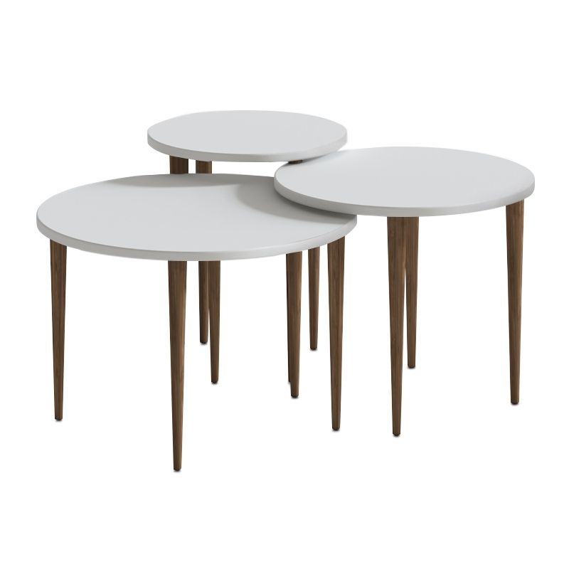 Τραπεζάκι Σαλονιού σετ 3 τμχ Nola Megapap Χρώμα Λευκό Ø60x46εκ.