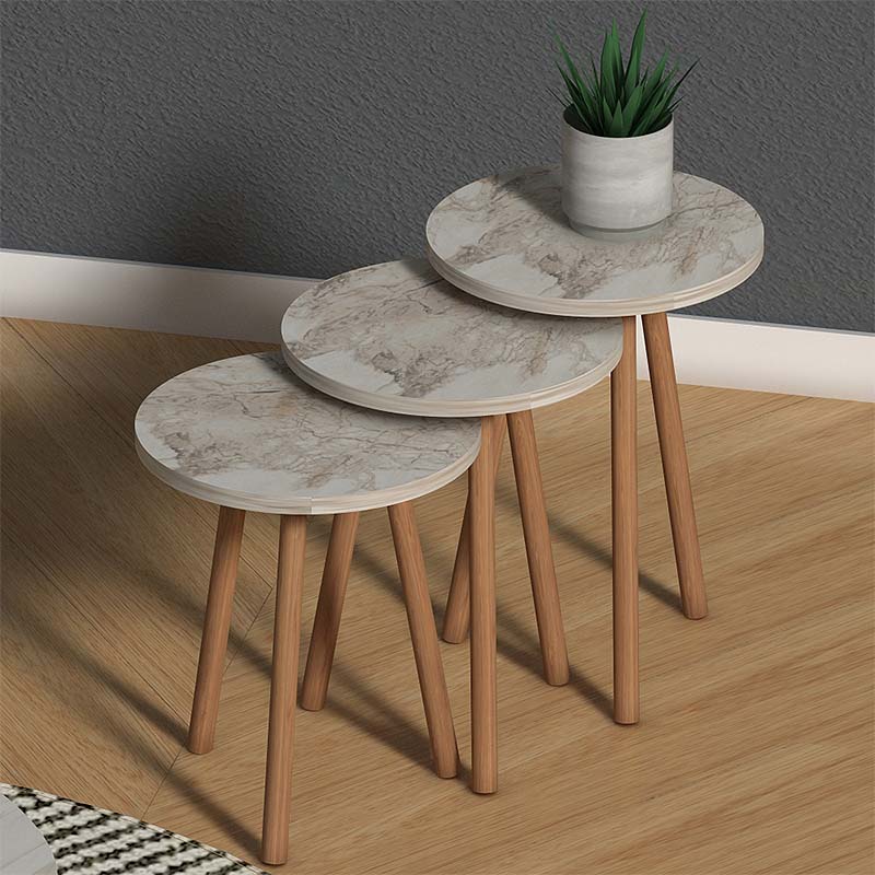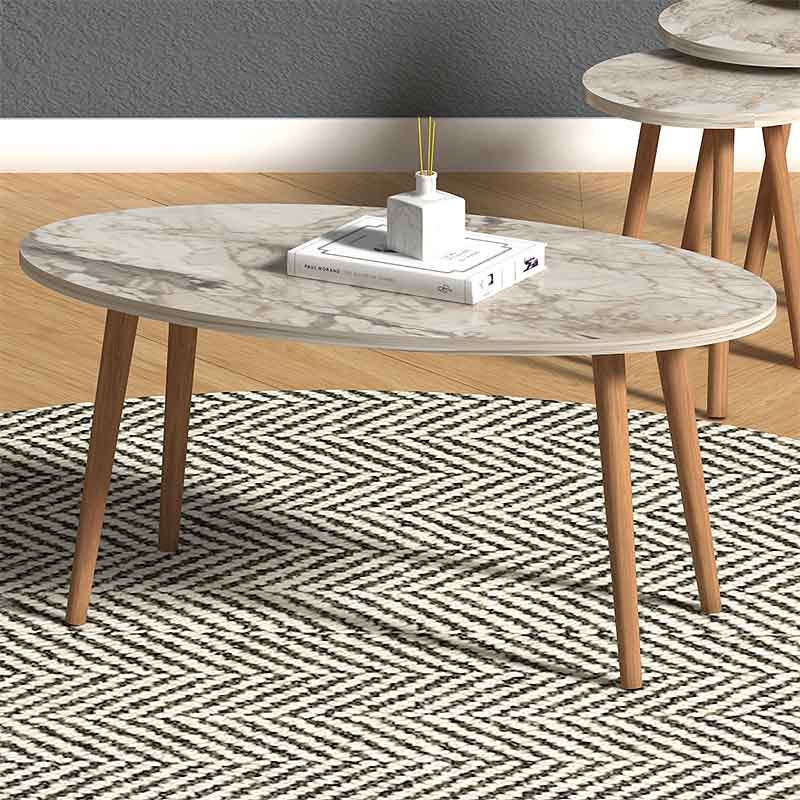 Τραπεζάκι Σαλονιού + Βοηθητικά Τραπεζάκια Elips Megapap από Μελαμίνη Χρώμα εφέ Μαρμάρου 90x50x41εκ.