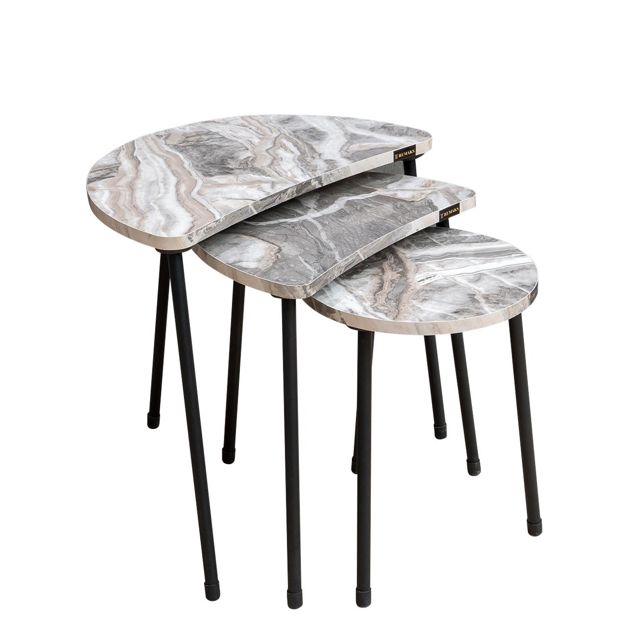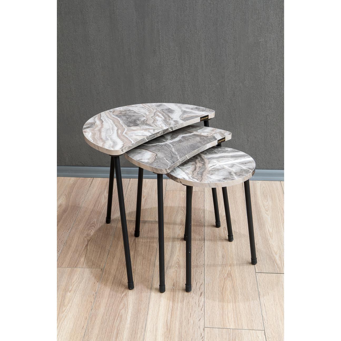 Τραπεζάκι Βοηθητικό ArteLibre JAMILAH Γκρι/Όψη Μαρμάρου Μοριοσανίδα/Μέταλλο 55x34.5x51cm Σετ 3Τμχ