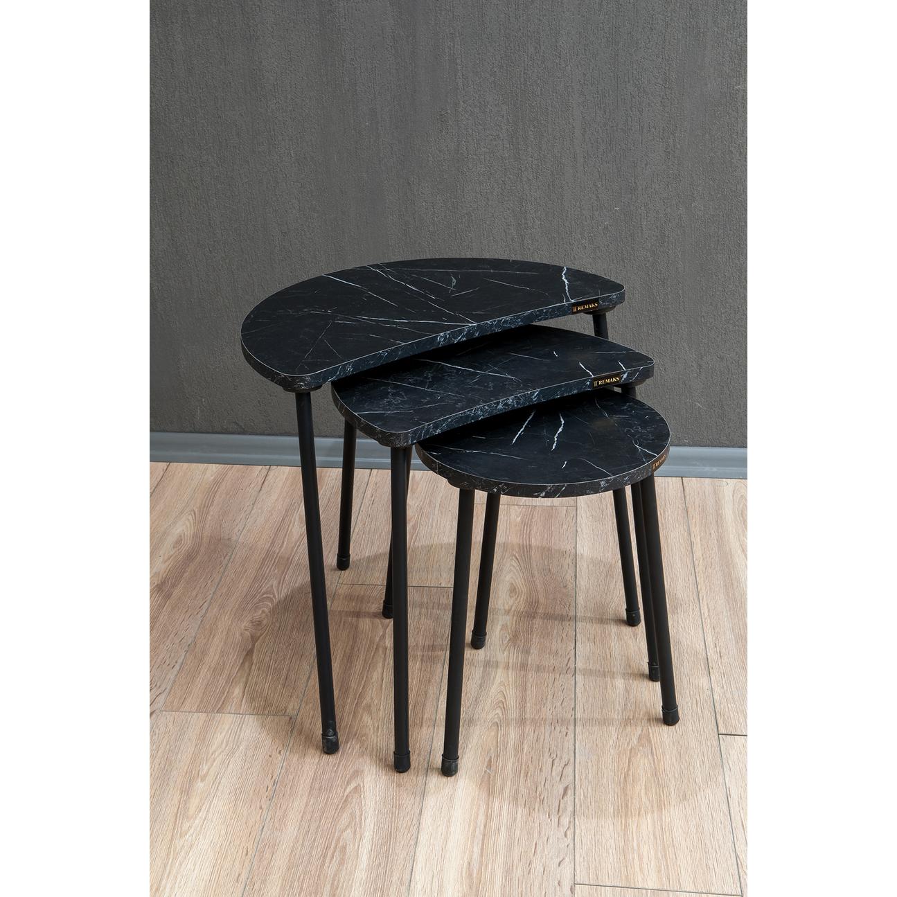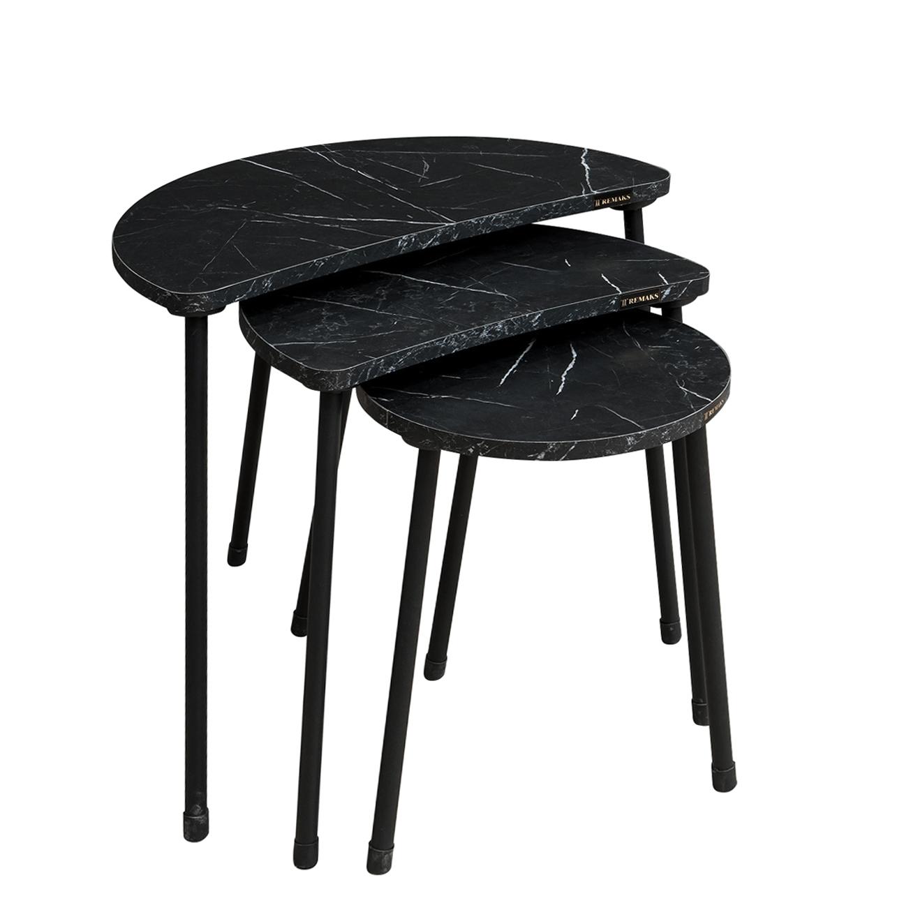 Τραπεζάκι Βοηθητικό ArteLibre JAMILAH Μαύρο/Όψη Μαρμάρου Μοριοσανίδα/Μέταλλο 55x34.5x51cm Σετ 3Τμχ