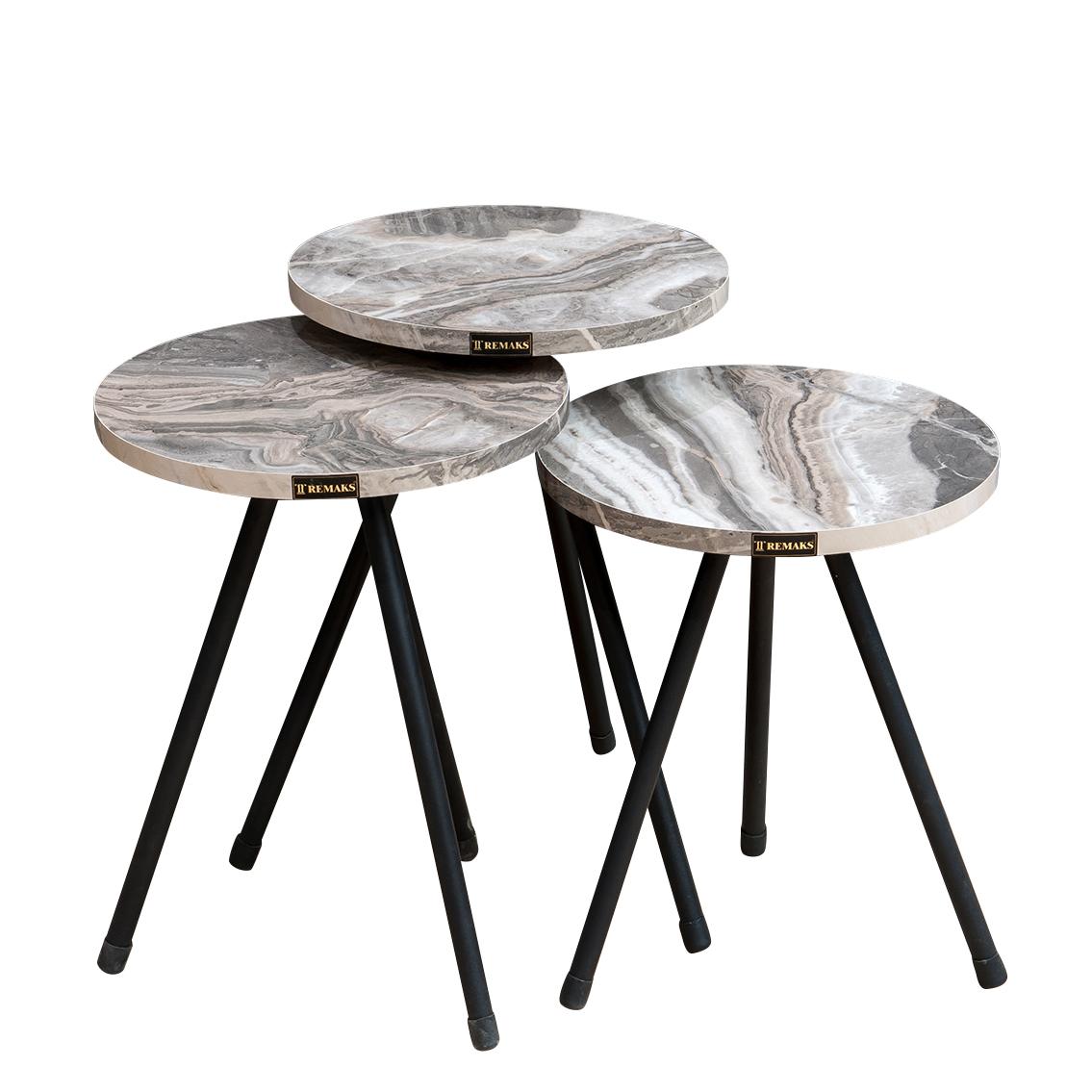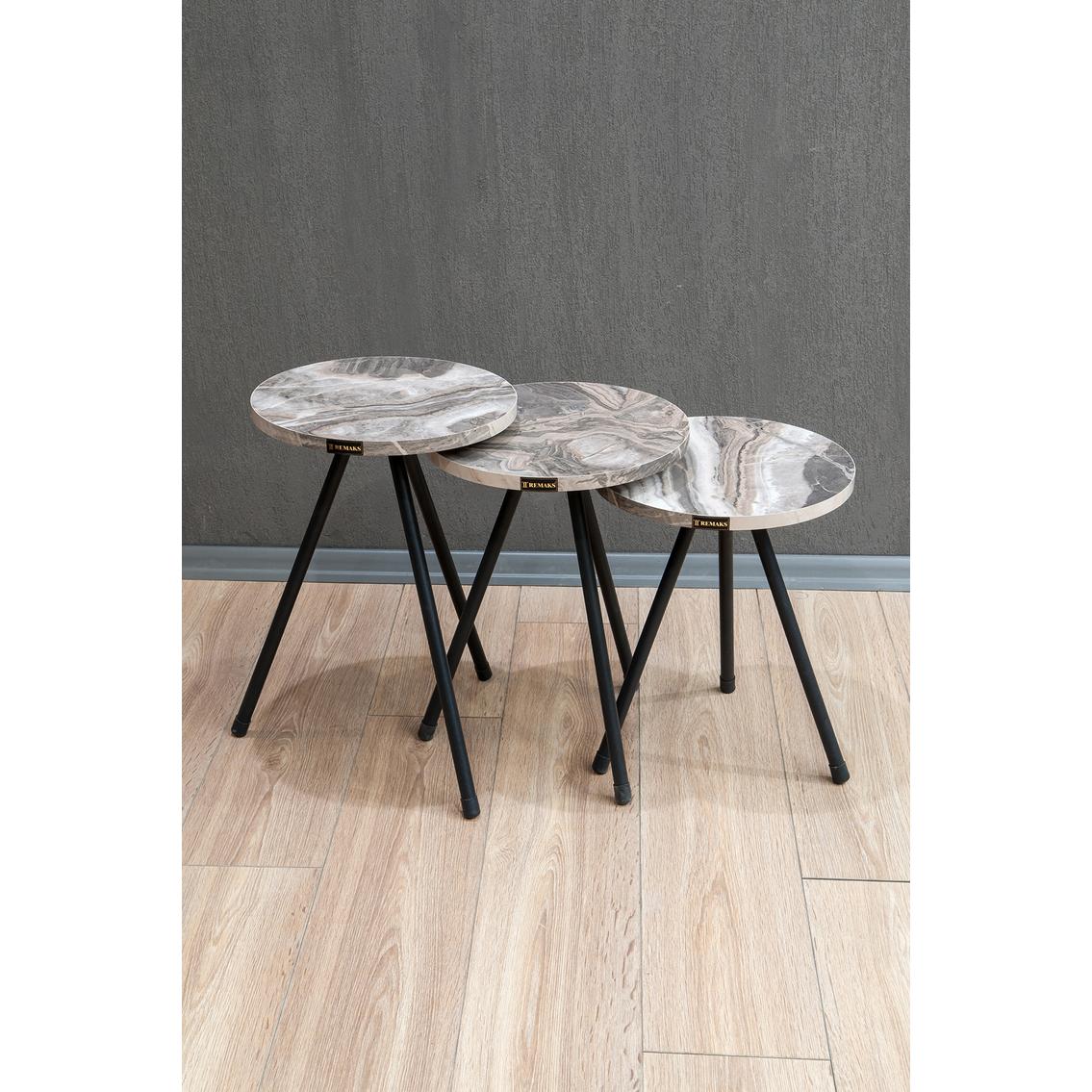 Τραπεζάκι Βοηθητικό ArteLibre UBA Γκρι/Όψη Μαρμάρου Μοριοσανίδα/Μέταλλο 33.5x52cm Σετ 3Τμχ