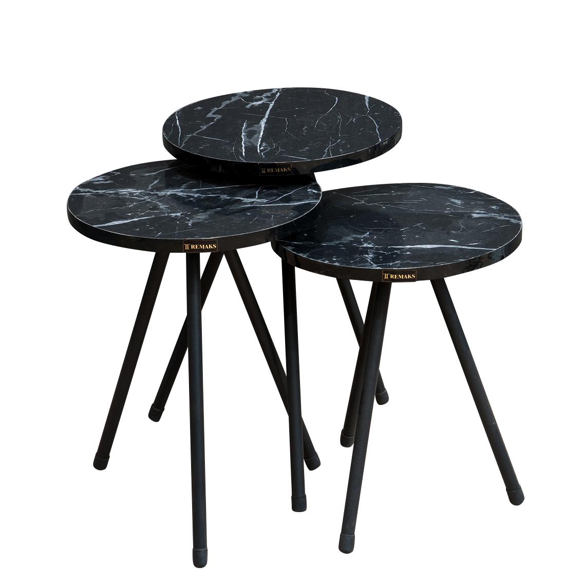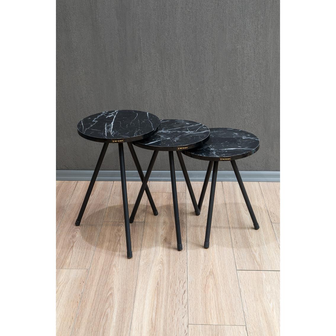 Τραπεζάκι Βοηθητικό ArteLibre UBA Μαύρο/Όψη Μαρμάρου Μοριοσανίδα/Μέταλλο 33.5x52cm Σετ 3Τμχ