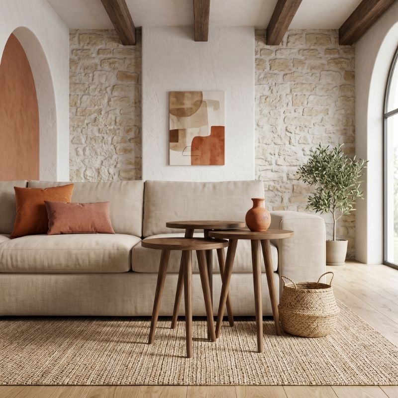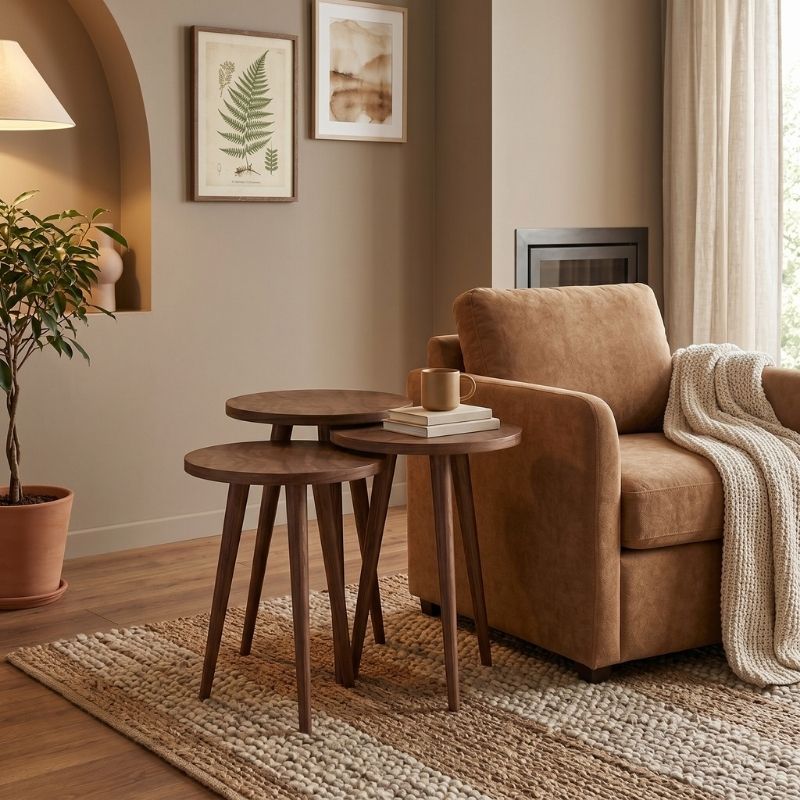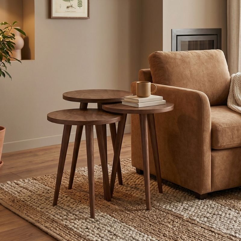 Τραπεζάκι Βοηθητικό σετ 3 τμχ Cruz Megapap Χρώμα Καρυδί Ø33x46εκ.