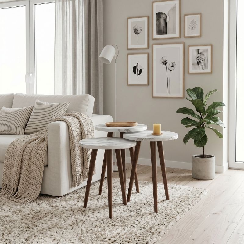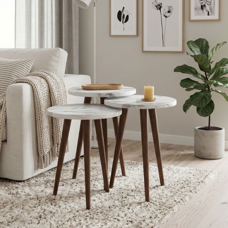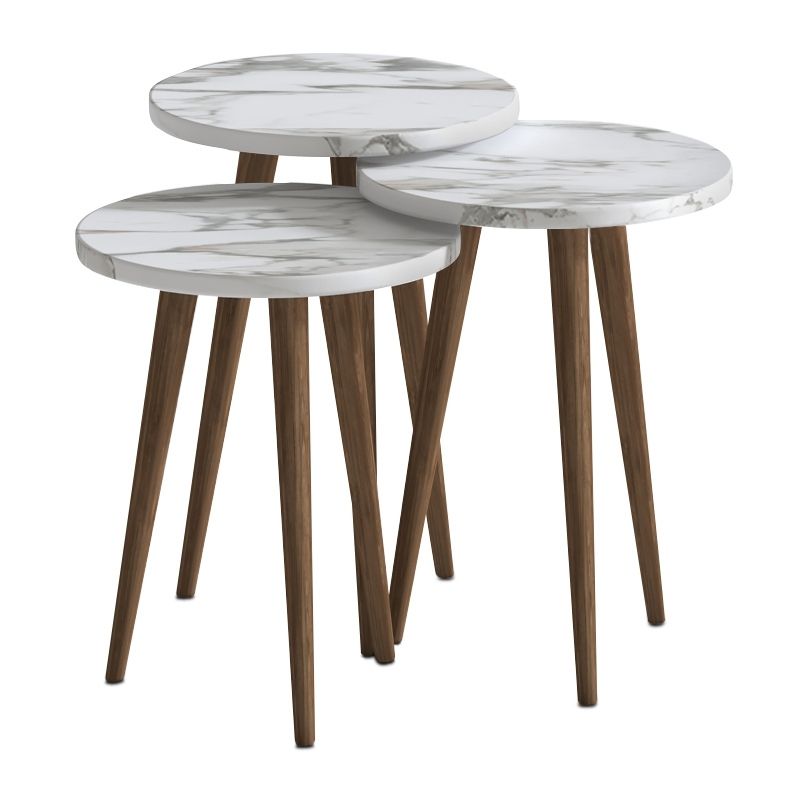 Τραπεζάκι Βοηθητικό σετ 3 τμχ Cruz Megapap Χρώμα Λευκό εφέ Μαρμάρου Ø33x46εκ.