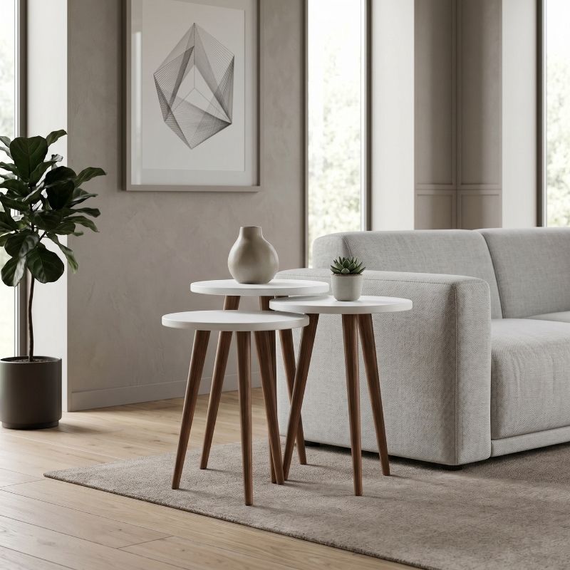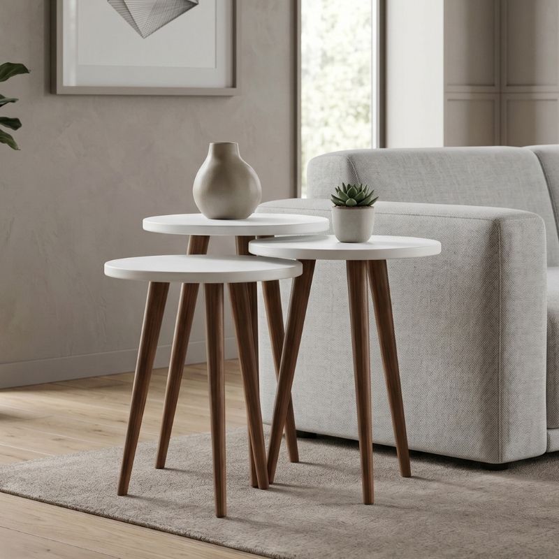 Τραπεζάκι Βοηθητικό σετ 3 τμχ Cruz Megapap Χρώμα Λευκό Ø33x46εκ.