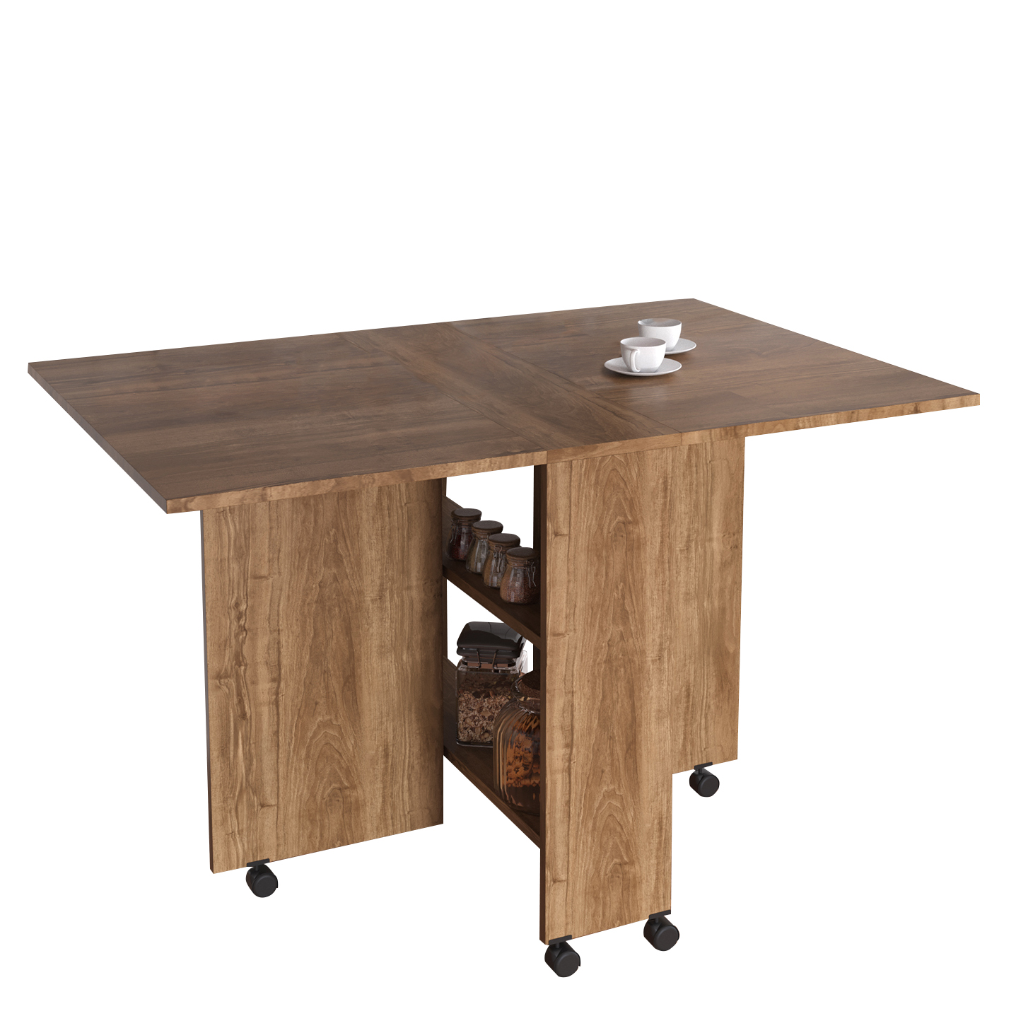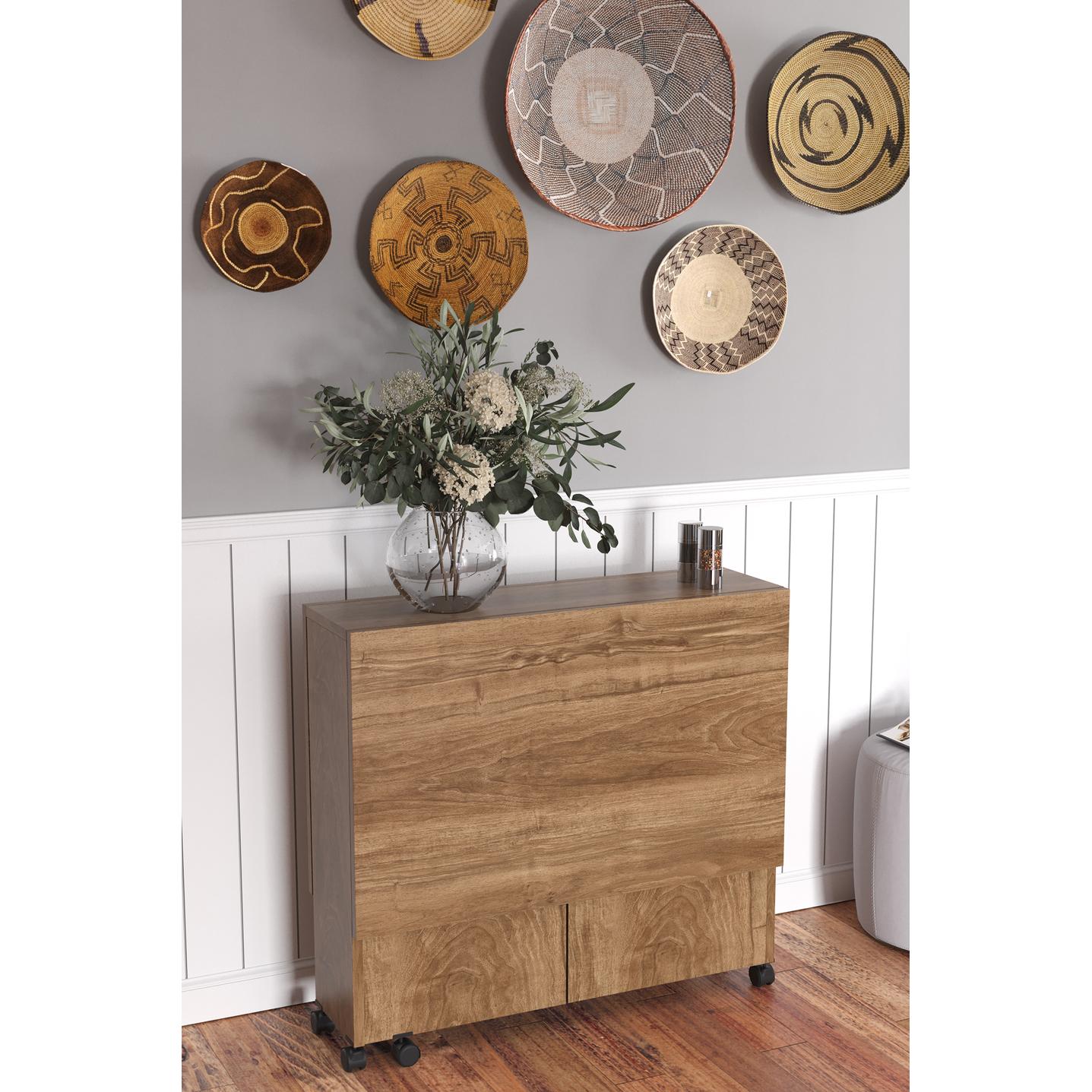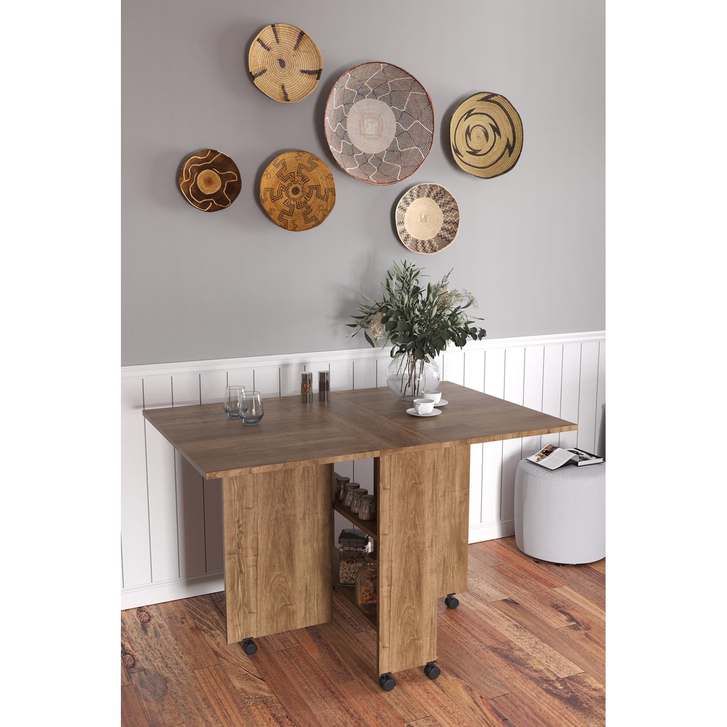 Τραπεζάκι Πτυσσόμενο ArteLibre Με Ροδάκια STANLEY Καρυδί Μοριοσανίδα 120x80x73cm