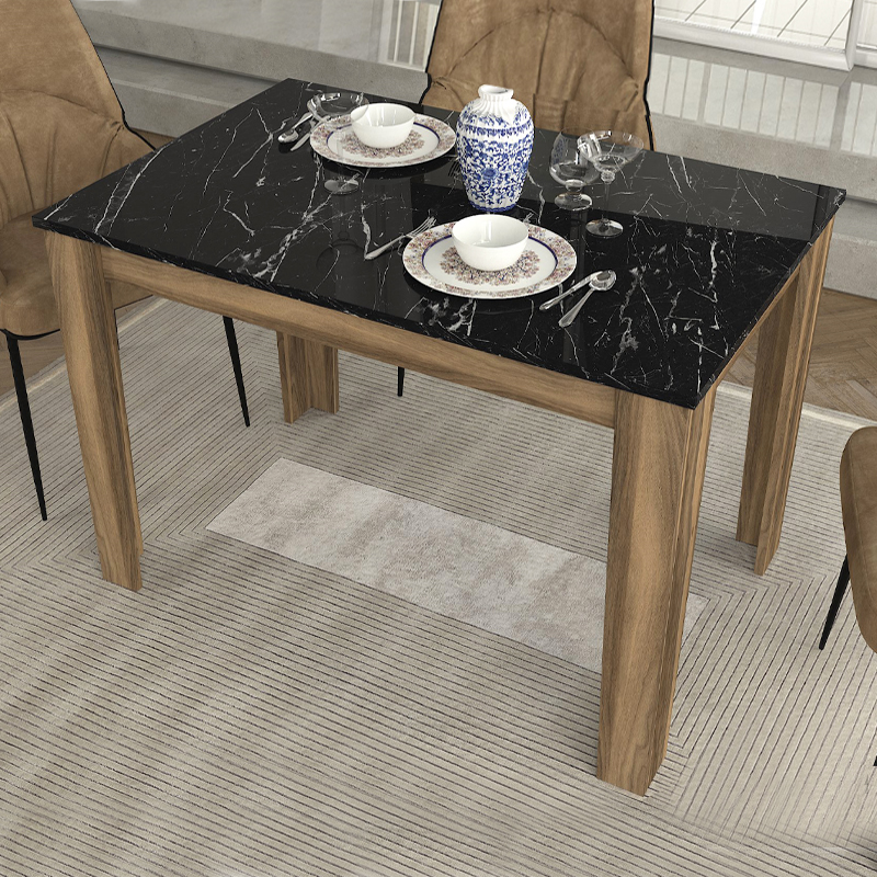 Τραπέζι Darlen Megapap Χρώμα Καρυδί - Μαύρο εφέ Μαρμάρου 110x72x74εκ.