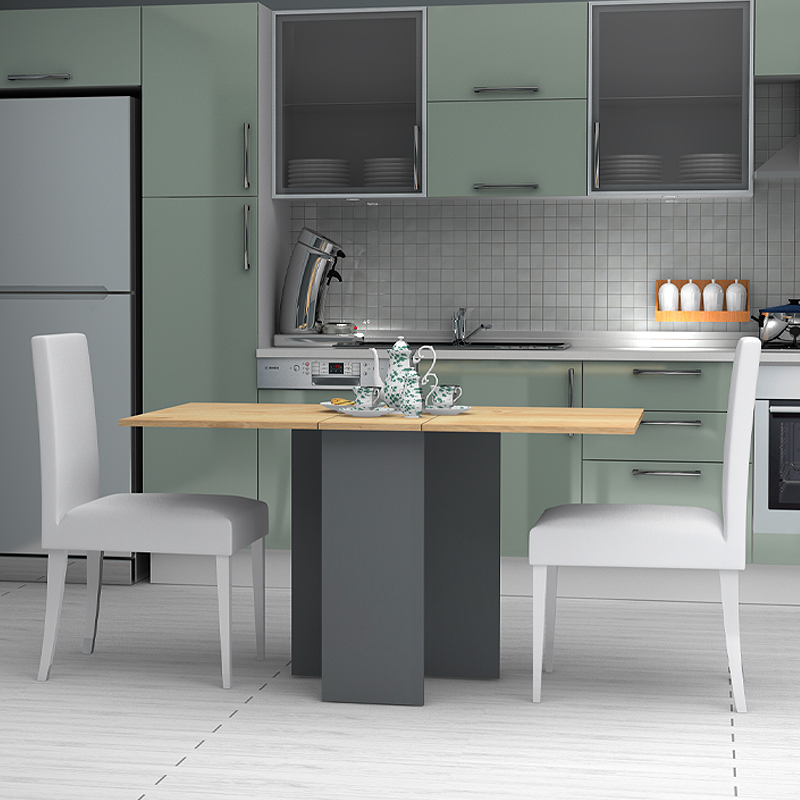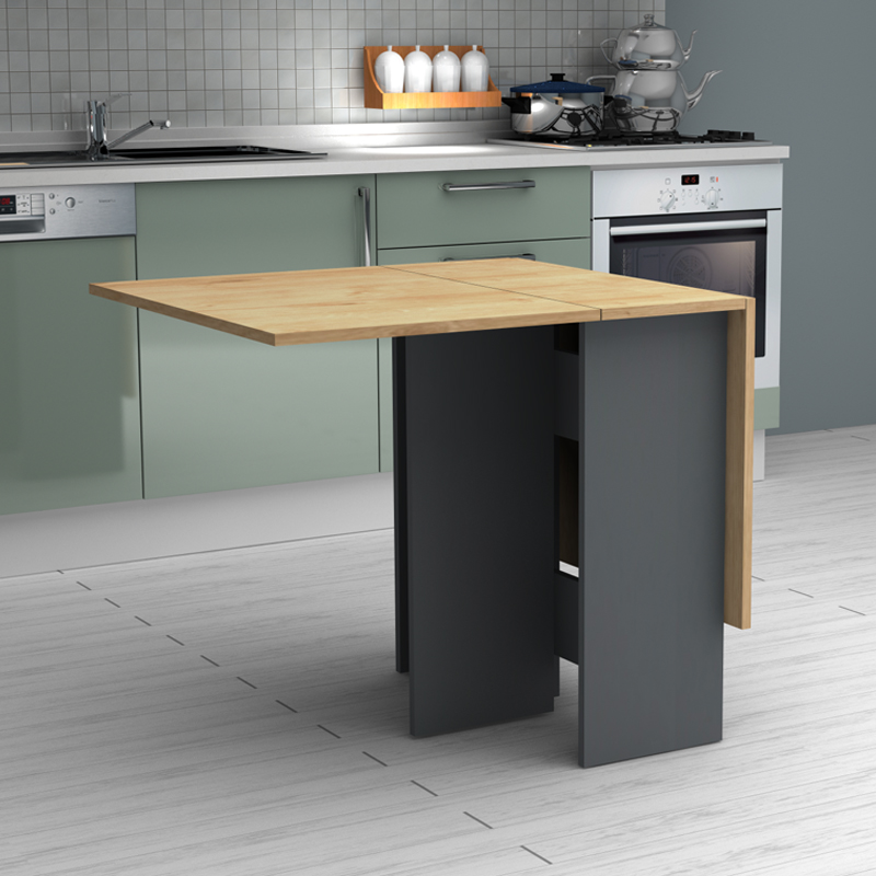Τραπέζι Pepe Megapap Επεκτεινόμενο Χρώμα Ανθρακί - Φυσικό Οξιάς 28(56+56)x77x75εκ.