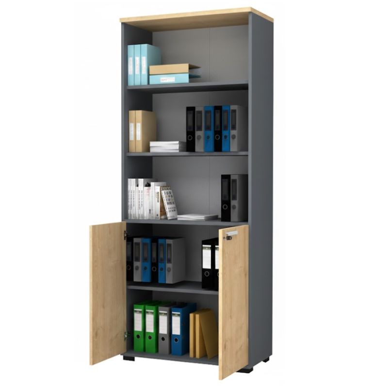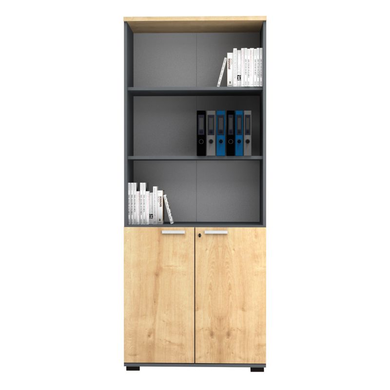 Βιβλιοθήκη Γραφείου Επαγγελματική Venturo Megapap Χρώμα Ανθρακί - Φυσικό Οξιάς 80x40x200εκ.