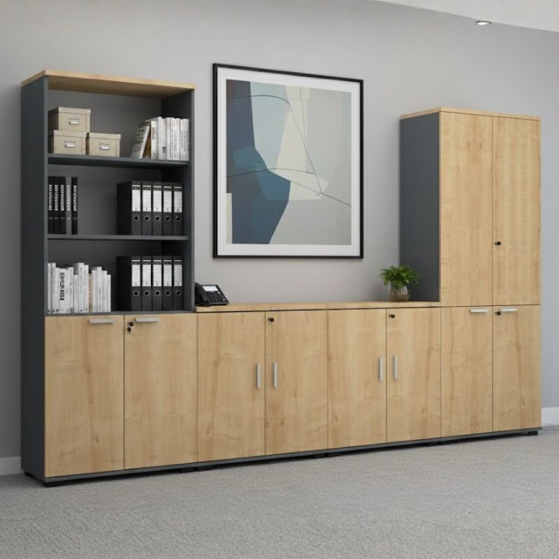 Η βιβλιοθήκη Venturo προσφέρει πρακτικό και ευρύχωρο αποθηκευτικό χώρο για βιβλία, ντοσιέ και διακοσμητικά αντικείμενα, συνδυάζοντας λειτουργικότητα με κομψή αισθητική. Ο στιβαρός σχεδιασμός και τα ανθεκτικά ράφια εξασφαλίζουν μακροχρόνια χρήση, ενώ οι καθαρές γραμμές και το μοντέρνο φινίρισμά της προσδίδουν μια αρμονική και επαγγελματική αίσθηση στον χώρο. Συνδυάζεται εύκολα με τα γραφεία, τις συρταριέρες και τις ντουλάπες της ίδιας σειράς, δημιουργώντας ένα πλήρως οργανωμένο και αρμονικό χώρο εργασίας.