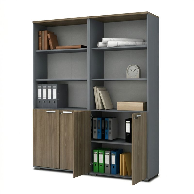 Βιβλιοθήκη Γραφείου με Κλειδαριά Επαγγελματική Venturo Megapap Χρώμα Ανθρακί - Καρυδί 160x40x200εκ.